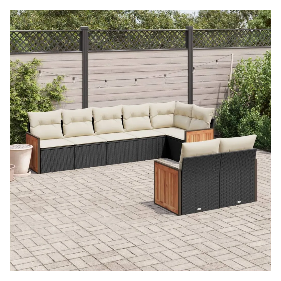Cet ensemble de canapés de jardin est le complément parfait de votre arrière-cour, terrasse ou patio, offrant un espace confortable et accueillant pour discuter avec la famille et les amis ou simplement se détendre et profiter de l'extérieur. Matériau durable : la résine tressée, également connue sous le nom de poly rotin, est un matériau synthétique solide et nécessitant peu d'entretien qui ressemble au rotin naturel. Il est léger, facile à nettoyer et couramment utilisé pour les meubles d'extérieur en raison de sa durabilité et de ses propriétés de résistance aux intempéries.Fonction de rangement avec sac résistant à l'eau : le mobilier de jardin dispose d'un espace de rangement sous l'assise, complété par un sac résistant à l'eau pour ranger coussins, jouets et autres objets. Le sac intérieur peut être solidement fixé au mobilier d'extérieur grâce à des attaches auto-agrippantes pour plus de stabilité.Housse amovible et lavable : ces coussins de siège sont dotés de housses amovibles pour un lavage et un entretien faciles.Conception modulaire : cet ensemble de meubles d'extérieur a une conception modulaire, ce qui le rend complètement flexible et facile à déplacer, afin que vous puissiez créer un agencement de meubles d'extérieur personnalisé. Bon à savoir :Pour que vos meubles d'extérieur restent beaux, nous vous recommandons de les protéger avec une housse imperméable.