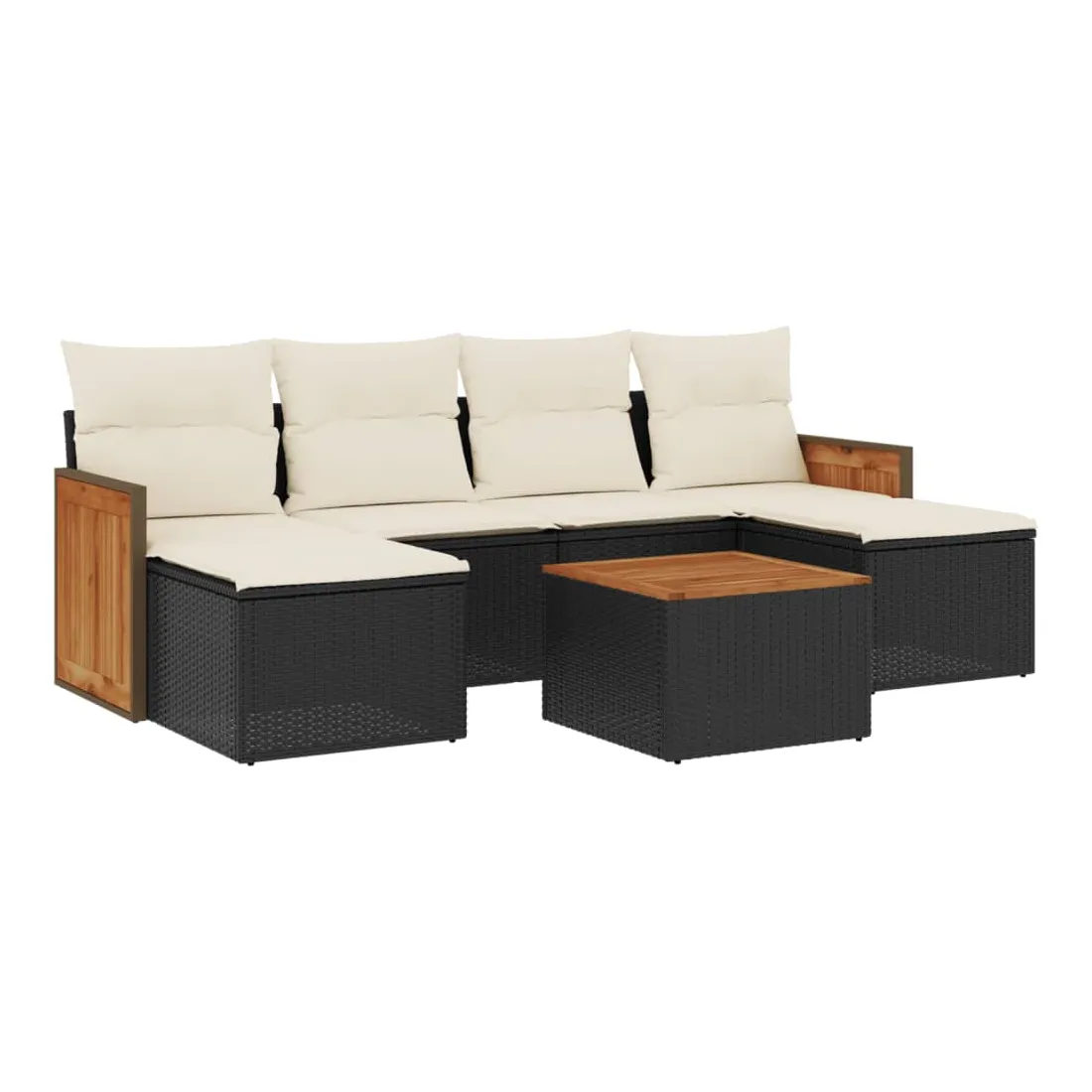 Cet ensemble de canapés de jardin est le complément parfait de votre arrière-cour, terrasse ou patio, offrant un espace confortable et accueillant pour discuter avec la famille et les amis ou simplement se détendre et profiter de l'extérieur. Matériau durable : la résine tressée, également connue sous le nom de poly rotin, est un matériau synthétique solide et nécessitant peu d'entretien qui ressemble au rotin naturel. Il est léger, facile à nettoyer et couramment utilisé pour les meubles d'extérieur en raison de sa durabilité et de ses propriétés de résistance aux intempéries.Fonction de rangement avec sac résistant à l'eau : le mobilier de jardin dispose d'un espace de rangement sous l'assise, complété par un sac résistant à l'eau pour ranger coussins, jouets et autres objets. Le sac intérieur peut être solidement fixé au mobilier d'extérieur grâce à des attaches auto-agrippantes pour plus de stabilité.Dessus stable et facile à nettoyer : cette table de jardin a un dessus en bois d'acacia robuste, durable et facile à nettoyer avec un chiffon humide.Housse amovible et lavable : ces coussins de siège sont dotés de housses amovibles pour un lavage et un entretien faciles.Conception modulaire : cet ensemble de meubles d'extérieur a une conception modulaire, ce qui le rend complètement flexible et facile à déplacer, afin que vous puissiez créer un agencement de meubles d'extérieur personnalisé. Bon à savoir :Pour que vos meubles d'extérieur restent beaux, nous vous recommandons de les protéger avec une housse imperméable.