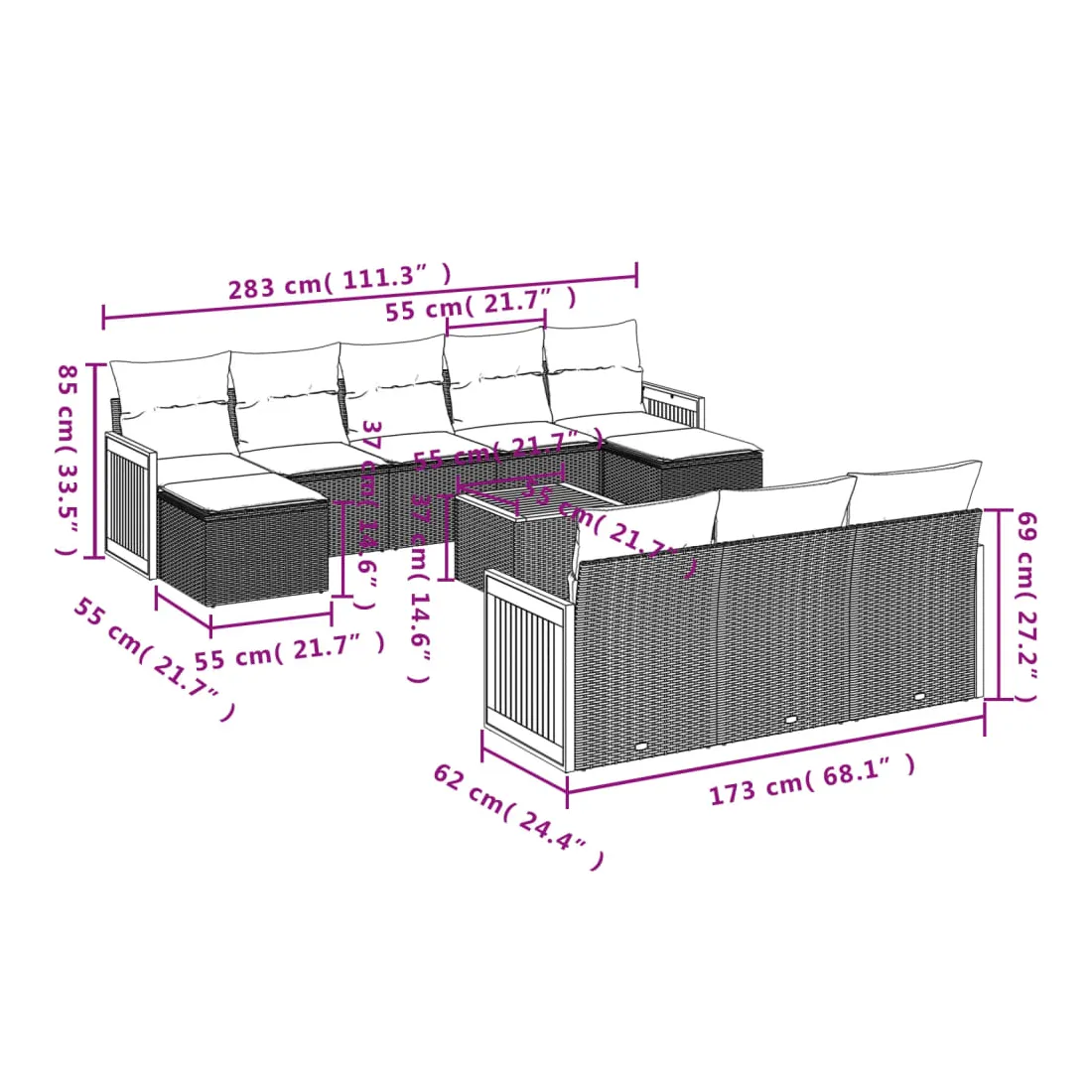- Dimensions : 55 x 55 x 37 cm (L x l x H)