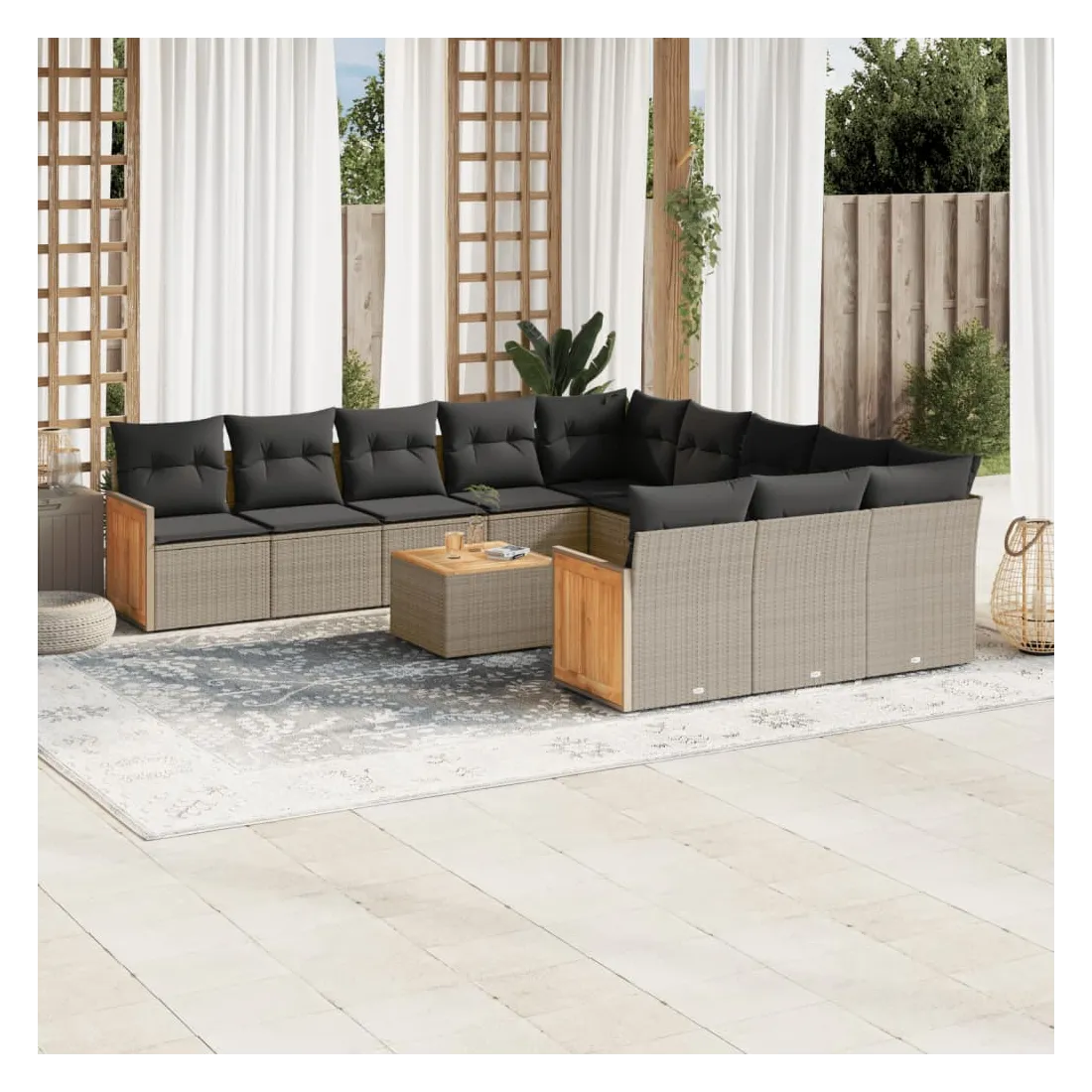 Cet ensemble de canapés de jardin est le complément parfait de votre arrière-cour, terrasse ou patio, offrant un espace confortable et accueillant pour discuter avec la famille et les amis ou simplement se détendre et profiter de l'extérieur. Matériau durable : la résine tressée, également connue sous le nom de poly rotin, est un matériau synthétique solide et nécessitant peu d'entretien qui ressemble au rotin naturel. Il est léger, facile à nettoyer et couramment utilisé pour les meubles d'extérieur en raison de sa durabilité et de ses propriétés de résistance aux intempéries.Fonction de rangement avec sac résistant à l'eau : le mobilier de jardin dispose d'un espace de rangement sous l'assise, complété par un sac résistant à l'eau pour ranger coussins, jouets et autres objets. Le sac intérieur peut être solidement fixé au mobilier d'extérieur grâce à des attaches auto-agrippantes pour plus de stabilité.Dessus stable et facile à nettoyer : cette table de jardin a un dessus en bois d'acacia robuste, durable et facile à nettoyer avec un chiffon humide.Housse amovible et lavable : ces coussins de siège sont dotés de housses amovibles pour un lavage et un entretien faciles.Conception modulaire : cet ensemble de meubles d'extérieur a une conception modulaire, ce qui le rend complètement flexible et facile à déplacer, afin que vous puissiez créer un agencement de meubles d'extérieur personnalisé. Bon à savoir :Pour que vos meubles d'extérieur restent beaux, nous vous recommandons de les protéger avec une housse imperméable.