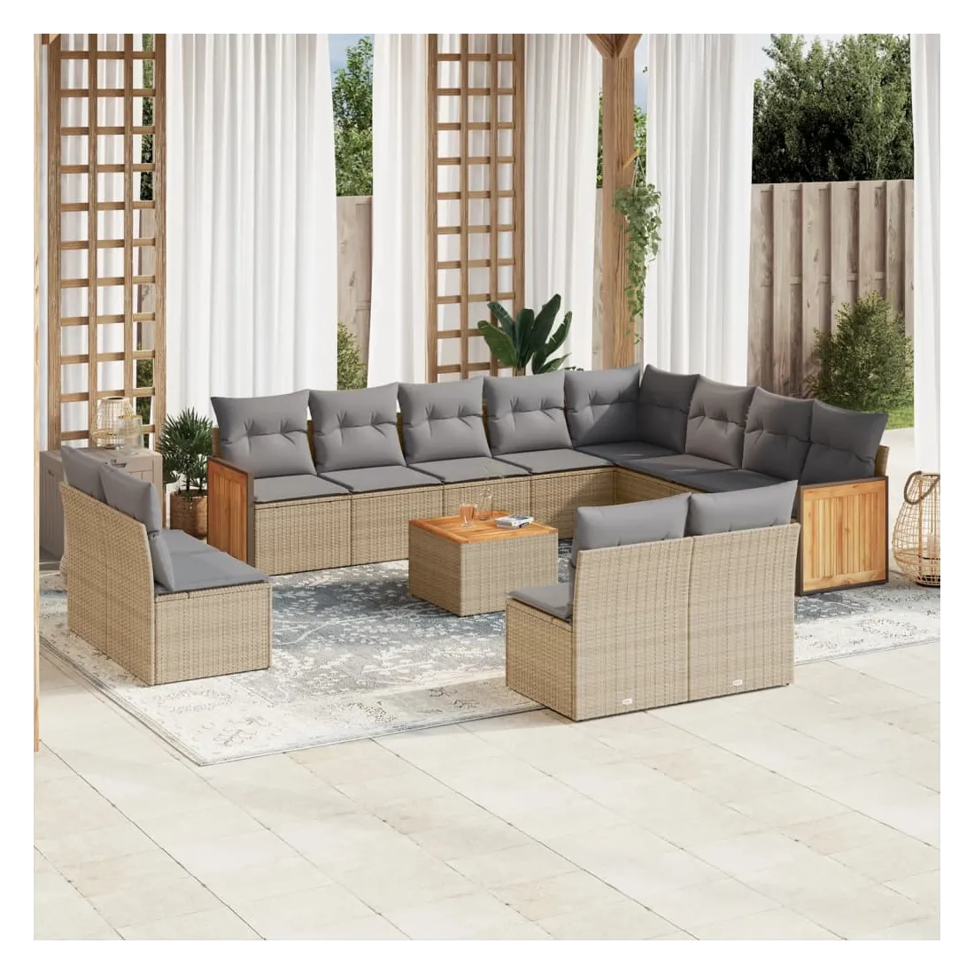 Cet ensemble de canapés de jardin est le complément parfait de votre arrière-cour, terrasse ou patio, offrant un espace confortable et accueillant pour discuter avec la famille et les amis ou simplement se détendre et profiter de l'extérieur. Matériau durable : la résine tressée, également connue sous le nom de poly rotin, est un matériau synthétique solide et nécessitant peu d'entretien qui ressemble au rotin naturel. Il est léger, facile à nettoyer et couramment utilisé pour les meubles d'extérieur en raison de sa durabilité et de ses propriétés de résistance aux intempéries.Fonction de rangement avec sac résistant à l'eau : le mobilier de jardin dispose d'un espace de rangement sous l'assise, complété par un sac résistant à l'eau pour ranger coussins, jouets et autres objets. Le sac intérieur peut être solidement fixé au mobilier d'extérieur grâce à des attaches auto-agrippantes pour plus de stabilité.Dessus stable et facile à nettoyer : cette table de jardin a un dessus en bois d'acacia robuste, durable et facile à nettoyer avec un chiffon humide.Housse amovible et lavable : ces coussins de siège sont dotés de housses amovibles pour un lavage et un entretien faciles.Conception modulaire : cet ensemble de meubles d'extérieur a une conception modulaire, ce qui le rend complètement flexible et facile à déplacer, afin que vous puissiez créer un agencement de meubles d'extérieur personnalisé. Bon à savoir :Pour que vos meubles d'extérieur restent beaux, nous vous recommandons de les protéger avec une housse imperméable.