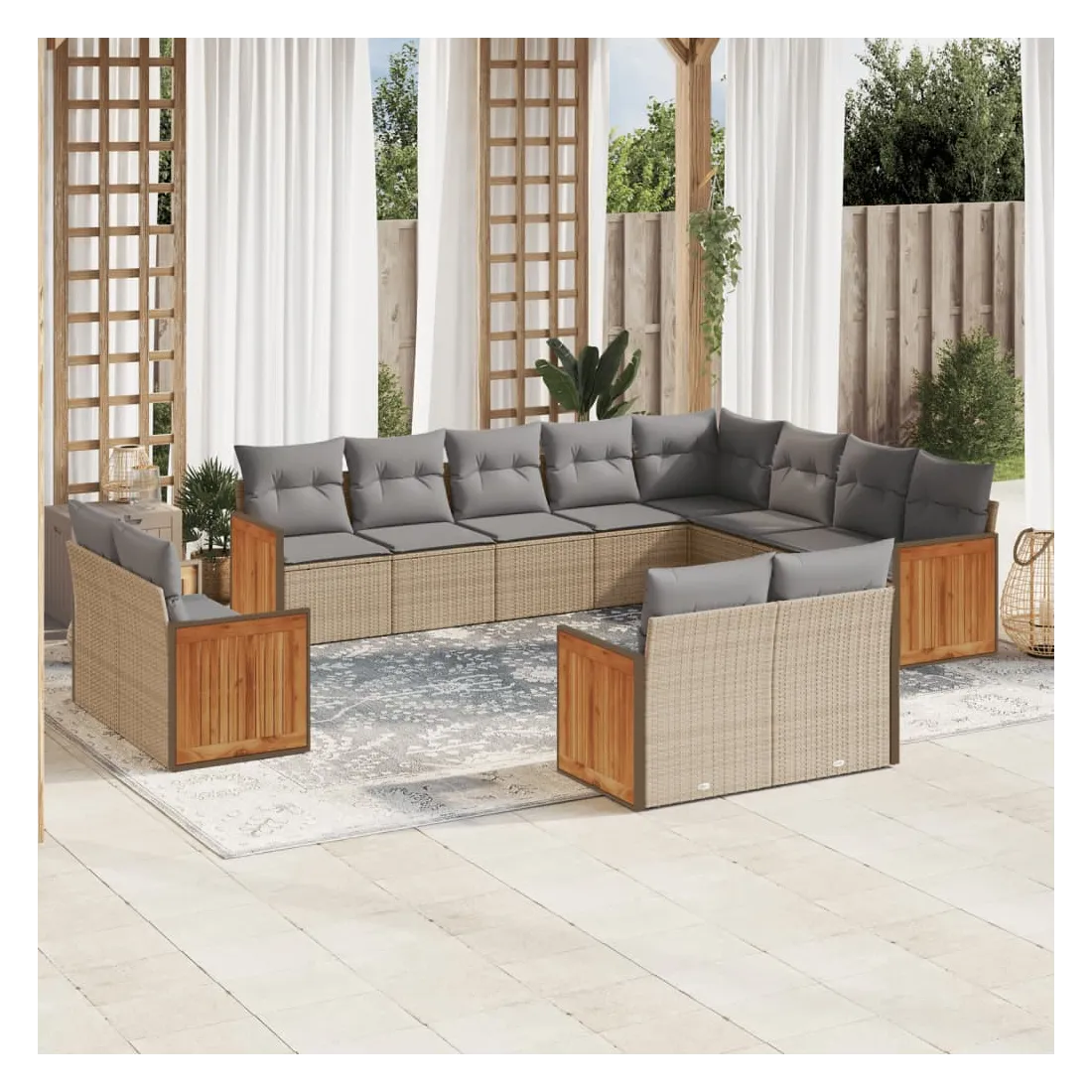 Cet ensemble de canapés de jardin est le complément parfait de votre arrière-cour, terrasse ou patio, offrant un espace confortable et accueillant pour discuter avec la famille et les amis ou simplement se détendre et profiter de l'extérieur. Matériau durable : la résine tressée, également connue sous le nom de poly rotin, est un matériau synthétique solide et nécessitant peu d'entretien qui ressemble au rotin naturel. Il est léger, facile à nettoyer et couramment utilisé pour les meubles d'extérieur en raison de sa durabilité et de ses propriétés de résistance aux intempéries.Fonction de rangement avec sac résistant à l'eau : le mobilier de jardin dispose d'un espace de rangement sous l'assise, complété par un sac résistant à l'eau pour ranger coussins, jouets et autres objets. Le sac intérieur peut être solidement fixé au mobilier d'extérieur grâce à des attaches auto-agrippantes pour plus de stabilité.Housse amovible et lavable : ces coussins de siège sont dotés de housses amovibles pour un lavage et un entretien faciles.Conception modulaire : cet ensemble de meubles d'extérieur a une conception modulaire, ce qui le rend complètement flexible et facile à déplacer, afin que vous puissiez créer un agencement de meubles d'extérieur personnalisé. Bon à savoir :Pour que vos meubles d'extérieur restent beaux, nous vous recommandons de les protéger avec une housse imperméable.
