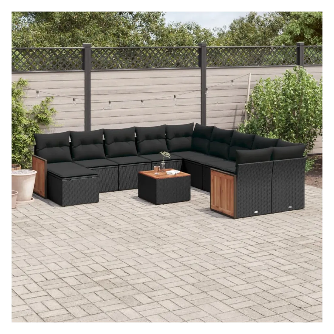 Cet ensemble de canapés de jardin est le complément parfait de votre arrière-cour, terrasse ou patio, offrant un espace confortable et accueillant pour discuter avec la famille et les amis ou simplement se détendre et profiter de l'extérieur. Matériau durable : la résine tressée, également connue sous le nom de poly rotin, est un matériau synthétique solide et nécessitant peu d'entretien qui ressemble au rotin naturel. Il est léger, facile à nettoyer et couramment utilisé pour les meubles d'extérieur en raison de sa durabilité et de ses propriétés de résistance aux intempéries.Fonction de rangement avec sac résistant à l'eau : le mobilier de jardin dispose d'un espace de rangement sous l'assise, complété par un sac résistant à l'eau pour ranger coussins, jouets et autres objets. Le sac intérieur peut être solidement fixé au mobilier d'extérieur grâce à des attaches auto-agrippantes pour plus de stabilité.Dessus stable et facile à nettoyer : cette table de jardin a un dessus en bois d'acacia robuste, durable et facile à nettoyer avec un chiffon humide.Housse amovible et lavable : ces coussins de siège sont dotés de housses amovibles pour un lavage et un entretien faciles.Conception modulaire : cet ensemble de meubles d'extérieur a une conception modulaire, ce qui le rend complètement flexible et facile à déplacer, afin que vous puissiez créer un agencement de meubles d'extérieur personnalisé. Bon à savoir :Pour que vos meubles d'extérieur restent beaux, nous vous recommandons de les protéger avec une housse imperméable.