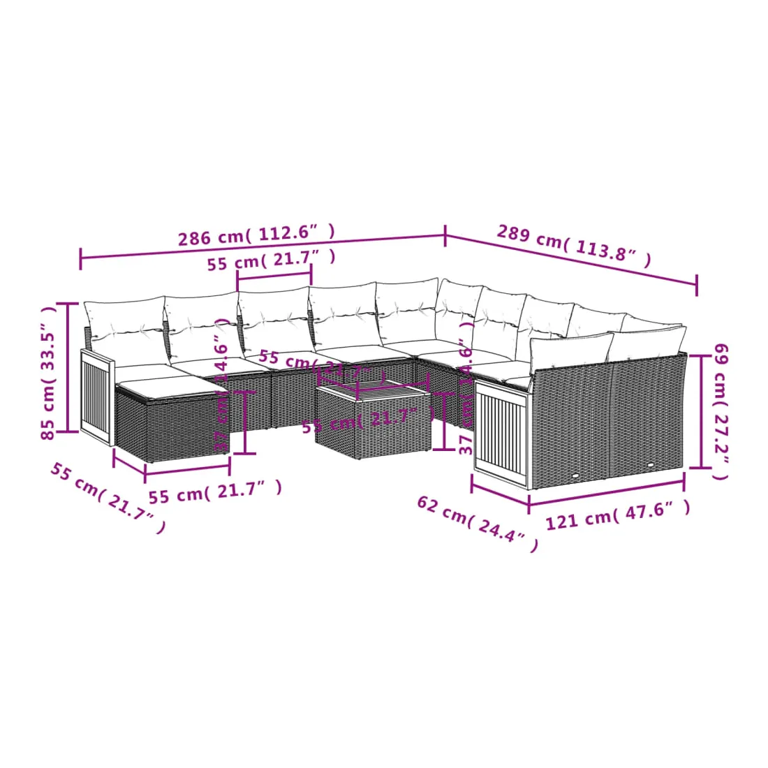 - Dimensions du coussin de dossier : 55 x 45 x 13 cm (L x l x é)