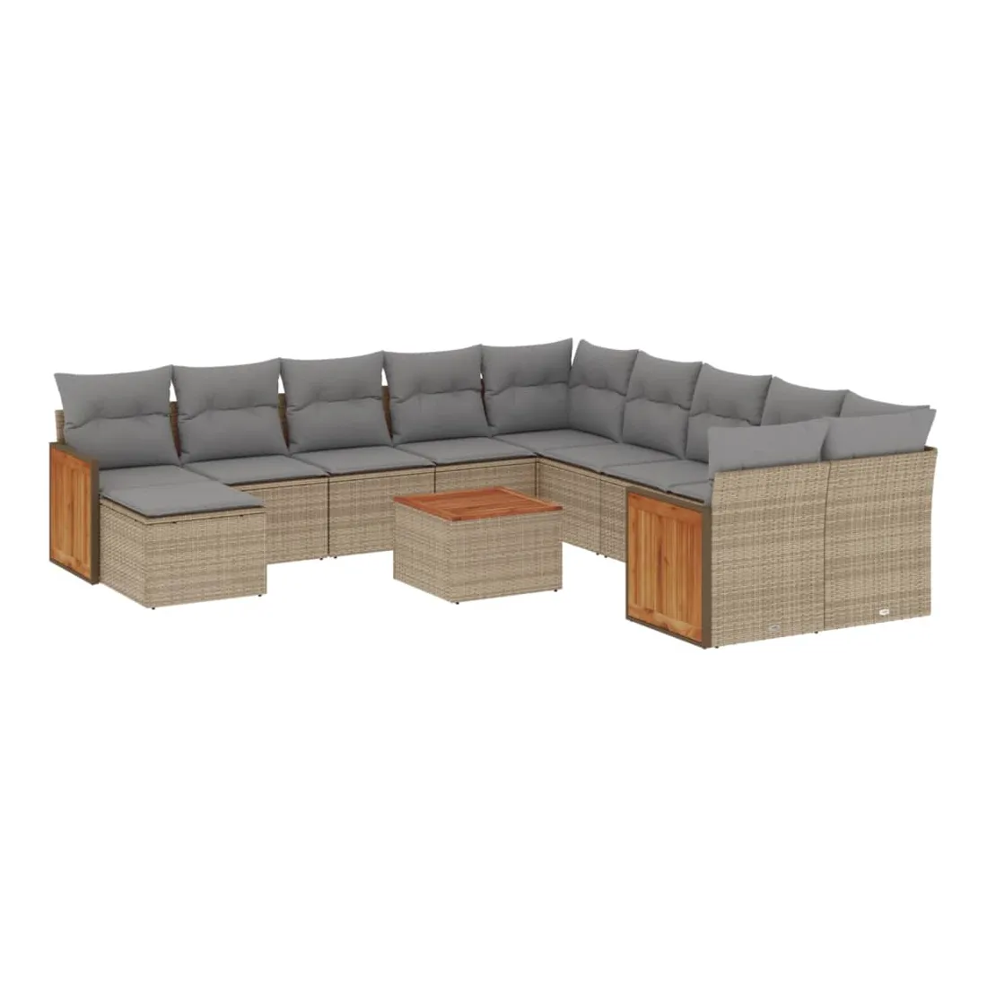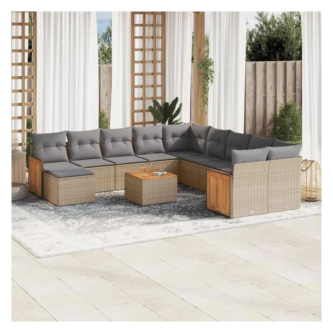 Cet ensemble de canapés de jardin est le complément parfait de votre arrière-cour, terrasse ou patio, offrant un espace confortable et accueillant pour discuter avec la famille et les amis ou simplement se détendre et profiter de l'extérieur. Matériau durable : la résine tressée, également connue sous le nom de poly rotin, est un matériau synthétique solide et nécessitant peu d'entretien qui ressemble au rotin naturel. Il est léger, facile à nettoyer et couramment utilisé pour les meubles d'extérieur en raison de sa durabilité et de ses propriétés de résistance aux intempéries.Fonction de rangement avec sac résistant à l'eau : le mobilier de jardin dispose d'un espace de rangement sous l'assise, complété par un sac résistant à l'eau pour ranger coussins, jouets et autres objets. Le sac intérieur peut être solidement fixé au mobilier d'extérieur grâce à des attaches auto-agrippantes pour plus de stabilité.Dessus stable et facile à nettoyer : cette table de jardin a un dessus en bois d'acacia robuste, durable et facile à nettoyer avec un chiffon humide.Housse amovible et lavable : ces coussins de siège sont dotés de housses amovibles pour un lavage et un entretien faciles.Conception modulaire : cet ensemble de meubles d'extérieur a une conception modulaire, ce qui le rend complètement flexible et facile à déplacer, afin que vous puissiez créer un agencement de meubles d'extérieur personnalisé. Bon à savoir :Pour que vos meubles d'extérieur restent beaux, nous vous recommandons de les protéger avec une housse imperméable.