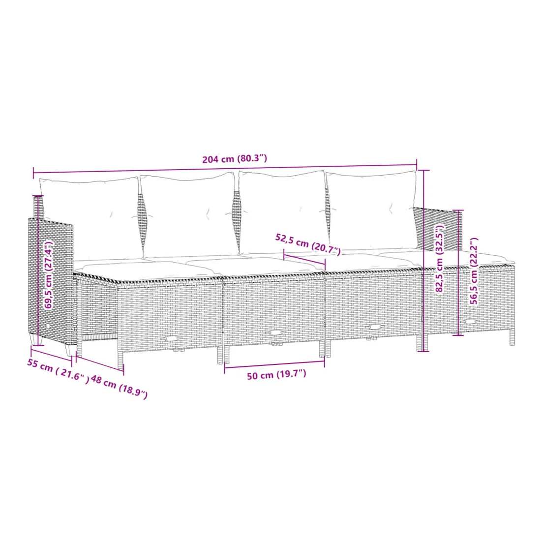 - Dimensions : 204 x 55 x 69,5 cm (l x P x H)