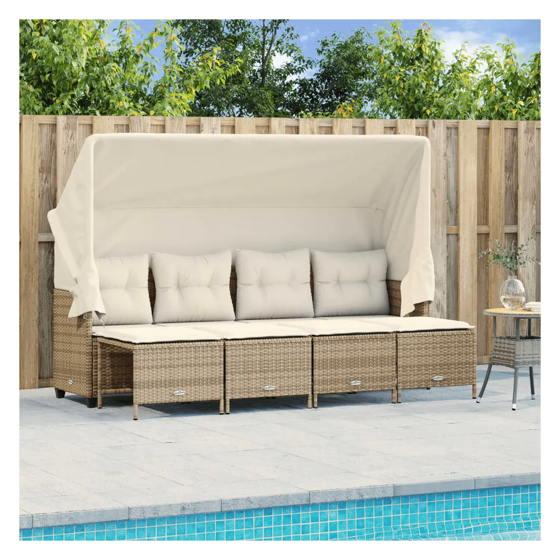 Cet ensemble de canapés de jardin est le complément parfait de votre arrière-cour, terrasse ou patio, offrant un espace confortable et accueillant pour discuter avec la famille et les amis ou simplement se détendre et profiter de l'extérieur. Matériau durable : la résine tressée, également connue sous le nom de poly rotin, est un matériau synthétique solide et nécessitant peu d'entretien qui ressemble au rotin naturel. Il est léger, facile à nettoyer et couramment utilisé pour les meubles d'extérieur en raison de sa durabilité et de ses propriétés de résistance aux intempéries.Auvent rétractable : grâce à l'auvent rétractable, vous pouvez créer un environnement extérieur frais et agréable tout au long de la journée.Expérience d'assise confortable : ce mobilier d'extérieur, doté de coussins épais, offre une expérience d'assise confortable.Pouf polyvalent : le tabouret est polyvalent, servant de repose-pieds confortable lorsque vous vous prélassez sur le canapé ou de siège supplémentaire dans votre jardin.Housse amovible et lavable : ces coussins de siège sont dotés de housses amovibles pour un lavage et un entretien faciles. Bon à savoir :Pour que vos meubles d'extérieur restent beaux, nous vous recommandons de les protéger avec une housse imperméable.