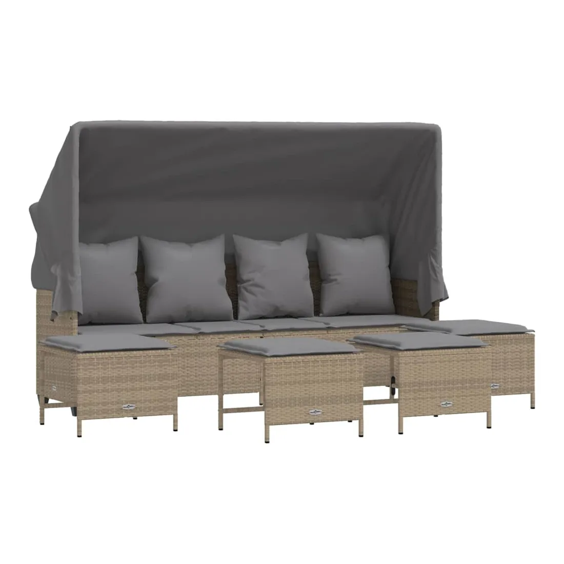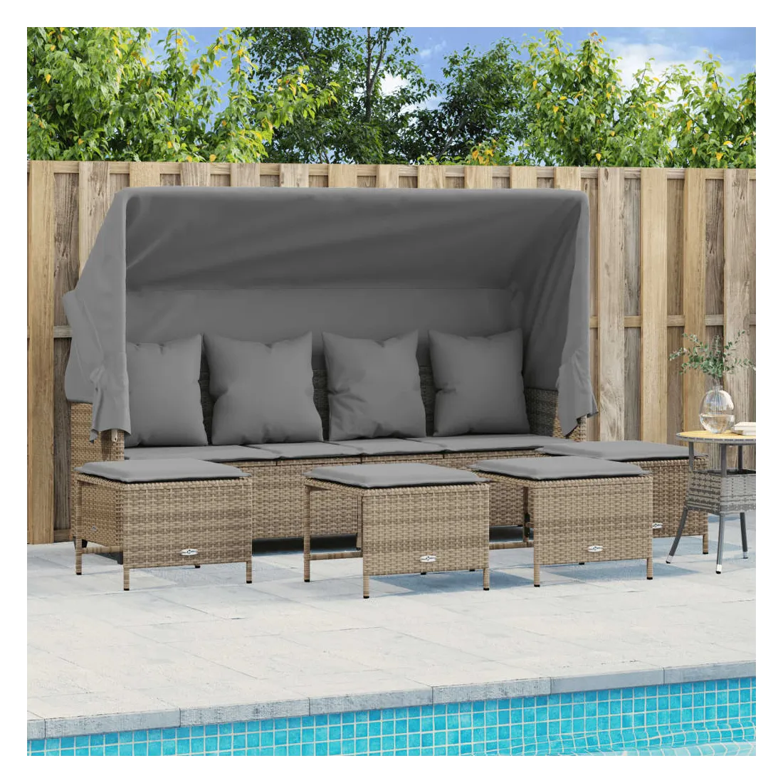 Cet ensemble de canapés de jardin est le complément parfait de votre arrière-cour, terrasse ou patio, offrant un espace confortable et accueillant pour discuter avec la famille et les amis ou simplement se détendre et profiter de l'extérieur. Matériau durable : la résine tressée, également connue sous le nom de poly rotin, est un matériau synthétique solide et nécessitant peu d'entretien qui ressemble au rotin naturel. Il est léger, facile à nettoyer et couramment utilisé pour les meubles d'extérieur en raison de sa durabilité et de ses propriétés de résistance aux intempéries.Dossier et repose-pied réglables : ce meuble d'extérieur est doté d'un dossier à 3 positions réglables et d'un repose-pieds à 2 positions réglables, ce qui vous permet de trouver facilement la position la plus confortable et la plus appropriée pour la détente.Auvent rétractable : grâce à l'auvent rétractable, vous pouvez créer un environnement extérieur frais et agréable tout au long de la journée.Expérience d'assise confortable : ce mobilier d'extérieur, doté de coussins épais, offre une expérience d'assise confortable.Pouf polyvalent : le tabouret est polyvalent, servant de repose-pieds confortable lorsque vous vous prélassez sur le canapé ou de siège supplémentaire dans votre jardin. Bon à savoir :Pour que vos meubles d'extérieur restent beaux, nous vous recommandons de les protéger avec une housse imperméable.