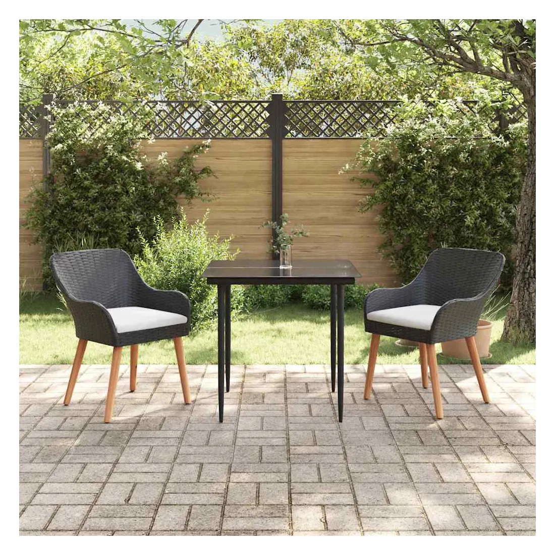 Le set de salle à manger de jardin est un super ajout à n'importe quel espace extérieur, avec un style moderne et des lignes épurées qui attirent l'œil. Réalisé pour ceux qui veulent le meilleur, cet ensemble allie perfection et style, idéal pour passer de bons moments dans votre jardin ou sur votre terrasse. Son look chic transforme votre extérieur en un endroit cool pour dîner et se relaxer. Matériau en poly rattan : Le set de salle à manger pour le jardin est fait en poly rattan, connu pour sa durabilité et son faible entretien. Ce matériau résiste aux intempéries, ce qui garantit que votre ensemble reste beau même après une utilisation extérieure. La texture du rattan apporte une touche classe à tout ensemble de jardin. Surface en verre trempé : La table est recouverte de verre trempé, ce qui offre une expérience de repas lisse. Le verre est facile à nettoyer, reste clair malgré le temps qu'il fait et ajoute une finition moderne qui complète bien le rattan. Confort total : Cet ensemble vient avec des coussins rembourrés conçus pour l'extérieur et résistants au mauvais temps, garantissant du confort même par temps difficile. Pensés pour le bien-être, les coussins s'adaptent bien aux chaises et visent à maximiser votre confort. Composants pratiques : La finition du dossier en poly rattan, avec des accoudoirs stables, crée une ambiance accueillante et ergonomique. Chaque élément a été soigneusement intégré pour rendre vos repas inoubliables. Entretien et maintenance : Conçu pour un entretien facile, il suffit de passer un coup de chiffon humide pour garder l'ensemble en top état. On vous conseille d'utiliser une housse étanche pour prolonger sa durabilité et garder son look au fil du temps.