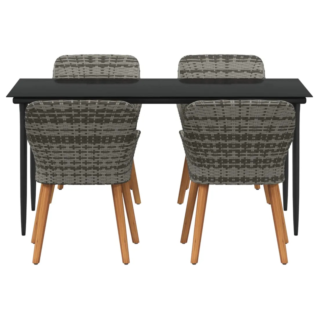 Le set de salle à manger de jardin est un super ajout à n'importe quel espace extérieur, avec un style moderne et des lignes épurées qui attirent l'œil. Réalisé pour ceux qui veulent le meilleur, cet ensemble allie perfection et style, idéal pour passer de bons moments dans votre jardin ou sur votre terrasse. Son look chic transforme votre extérieur en un endroit cool pour dîner et se relaxer. Matériau en poly rattan : Le set de salle à manger pour le jardin est fait en poly rattan, connu pour sa durabilité et son faible entretien. Ce matériau résiste aux intempéries, ce qui garantit que votre ensemble reste beau même après une utilisation extérieure. La texture du rattan apporte une touche classe à tout ensemble de jardin. Surface en verre trempé : La table est recouverte de verre trempé, ce qui offre une expérience de repas lisse. Le verre est facile à nettoyer, reste clair malgré le temps qu'il fait et ajoute une finition moderne qui complète bien le rattan. Confort total : Cet ensemble vient avec des coussins rembourrés conçus pour l'extérieur et résistants au mauvais temps, garantissant du confort même par temps difficile. Pensés pour le bien-être, les coussins s'adaptent bien aux chaises et visent à maximiser votre confort. Composants pratiques : La finition du dossier en poly rattan, avec des accoudoirs stables, crée une ambiance accueillante et ergonomique. Chaque élément a été soigneusement intégré pour rendre vos repas inoubliables. Entretien et maintenance : Conçu pour un entretien facile, il suffit de passer un coup de chiffon humide pour garder l'ensemble en top état. On vous conseille d'utiliser une housse étanche pour prolonger sa durabilité et garder son look au fil du temps.