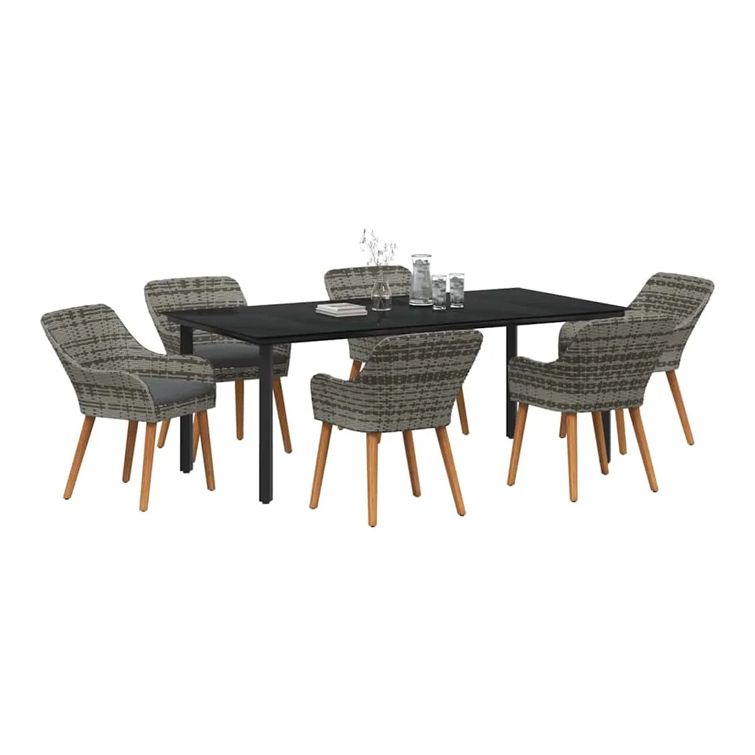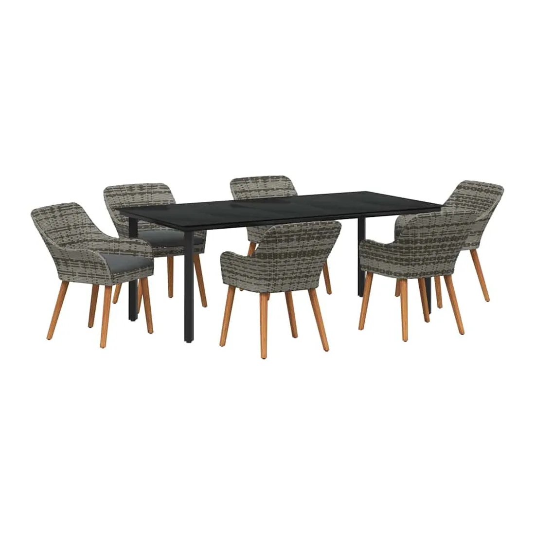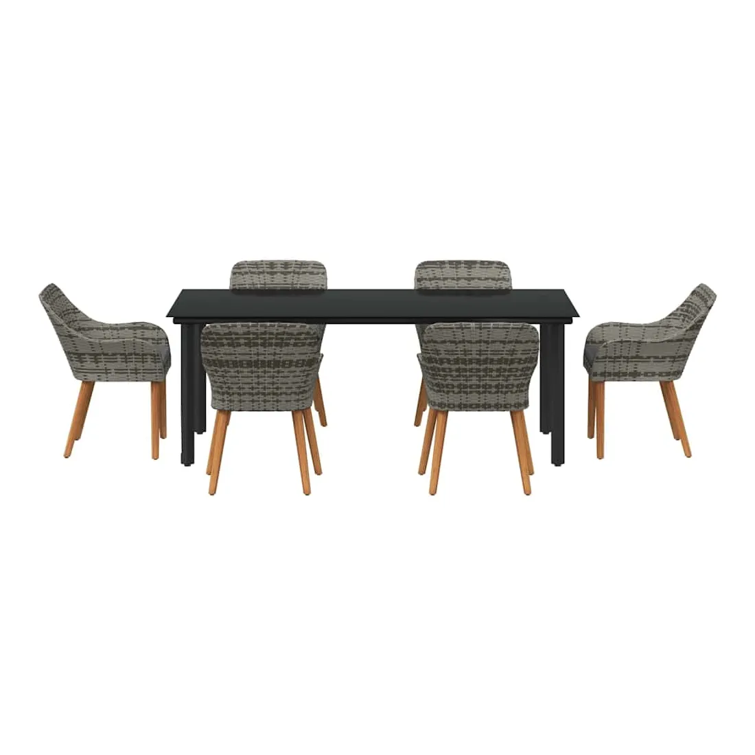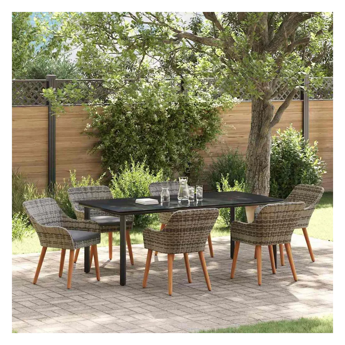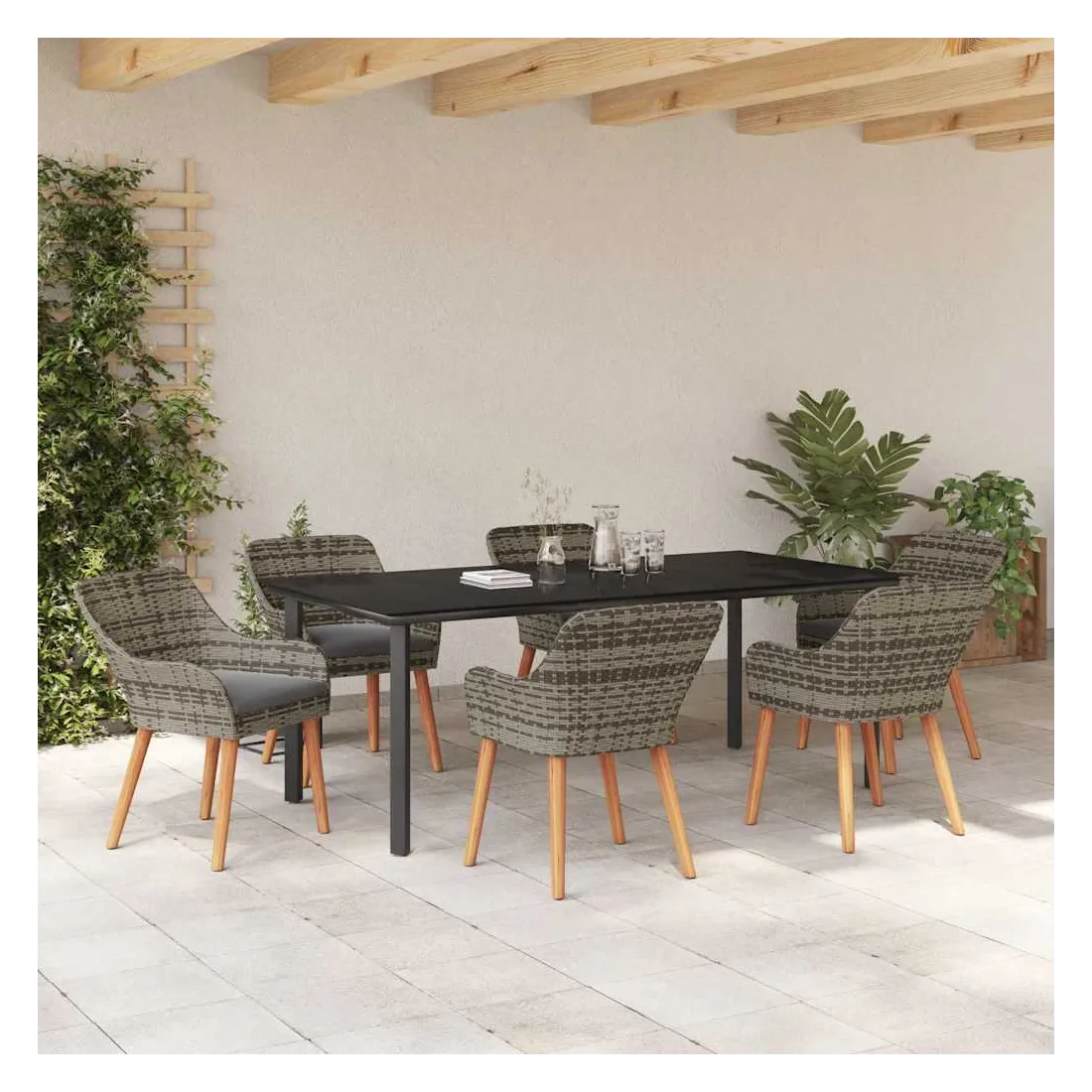 Ce superbe set de salle à manger de jardin change n'importe quel espace extérieur en un coin moderne. Fait pour ceux qui aiment les lignes claires et le style contemporain, il combine sophistication et utilité. Son cadre élégant attire le regard, que ce soit pour un brunch en toute intimité ou un dîner animé. La simplicité du set, combinée à un mix de matériaux trendy, lui permet de s'intégrer facilement dans des jardins modernes ou des terrasses stylées. Profitez de moments fun tout en vous relaxant dans le confort et la beauté. Poly Rattan Haute Densité : Ce set est fait en poly rattan connu pour sa durabilité et sa résistance aux UV. Ce matériau endure les intempéries tout en offrant un confort d'assise et en gardant un look élégant pour n'importe quel jardin ou terrasse. Arrangement Complet de Sièges : Notre set inclut des chaises stylées et une table de patio avec un plateau en verre trempé. Chaque chaise est équipée de coussins résistants aux intempéries pour plus de confort et de style, et la table en verre trempé apporte une touche d'élégance et se nettoie facilement. Construction Supérieure : Les pieds en acier recouvert de poudre garantissent la stabilité et supportent jusqu'à 110 kg par chaise. Une structure solide pour que votre mobilier de jardin reste en bon état dans le temps. Style Moderne : Avec un design minimaliste, le style moderne de ce set s'adapte facilement à des ambiances contemporaines. Chic, sophistiqué et bien conçu, il est parfait pour ceux qui cherchent à marier forme et fonction dans leur espace extérieur. Entretien Simple : Pas de tracas pour l'entretien de ce set ; un coup de chiffon humide par ci par là et c'est bon. L'assemblage nécessite deux personnes et un tournevis, pour une installation simple.