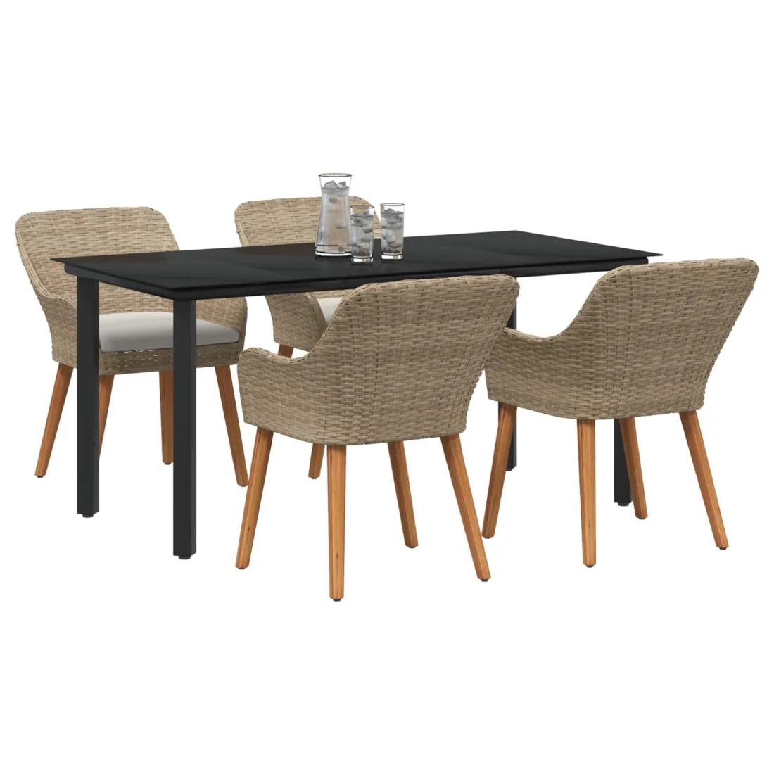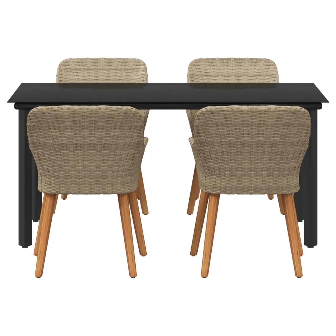 Ce superbe set de salle à manger de jardin change n'importe quel espace extérieur en un coin moderne. Fait pour ceux qui aiment les lignes claires et le style contemporain, il combine sophistication et utilité. Son cadre élégant attire le regard, que ce soit pour un brunch en toute intimité ou un dîner animé. La simplicité du set, combinée à un mix de matériaux trendy, lui permet de s'intégrer facilement dans des jardins modernes ou des terrasses stylées. Profitez de moments fun tout en vous relaxant dans le confort et la beauté. Poly Rattan Haute Densité : Ce set est fait en poly rattan connu pour sa durabilité et sa résistance aux UV. Ce matériau endure les intempéries tout en offrant un confort d'assise et en gardant un look élégant pour n'importe quel jardin ou terrasse. Arrangement Complet de Sièges : Notre set inclut des chaises stylées et une table de patio avec un plateau en verre trempé. Chaque chaise est équipée de coussins résistants aux intempéries pour plus de confort et de style, et la table en verre trempé apporte une touche d'élégance et se nettoie facilement. Construction Supérieure : Les pieds en acier recouvert de poudre garantissent la stabilité et supportent jusqu'à 110 kg par chaise. Une structure solide pour que votre mobilier de jardin reste en bon état dans le temps. Style Moderne : Avec un design minimaliste, le style moderne de ce set s'adapte facilement à des ambiances contemporaines. Chic, sophistiqué et bien conçu, il est parfait pour ceux qui cherchent à marier forme et fonction dans leur espace extérieur. Entretien Simple : Pas de tracas pour l'entretien de ce set ; un coup de chiffon humide par ci par là et c'est bon. L'assemblage nécessite deux personnes et un tournevis, pour une installation simple.