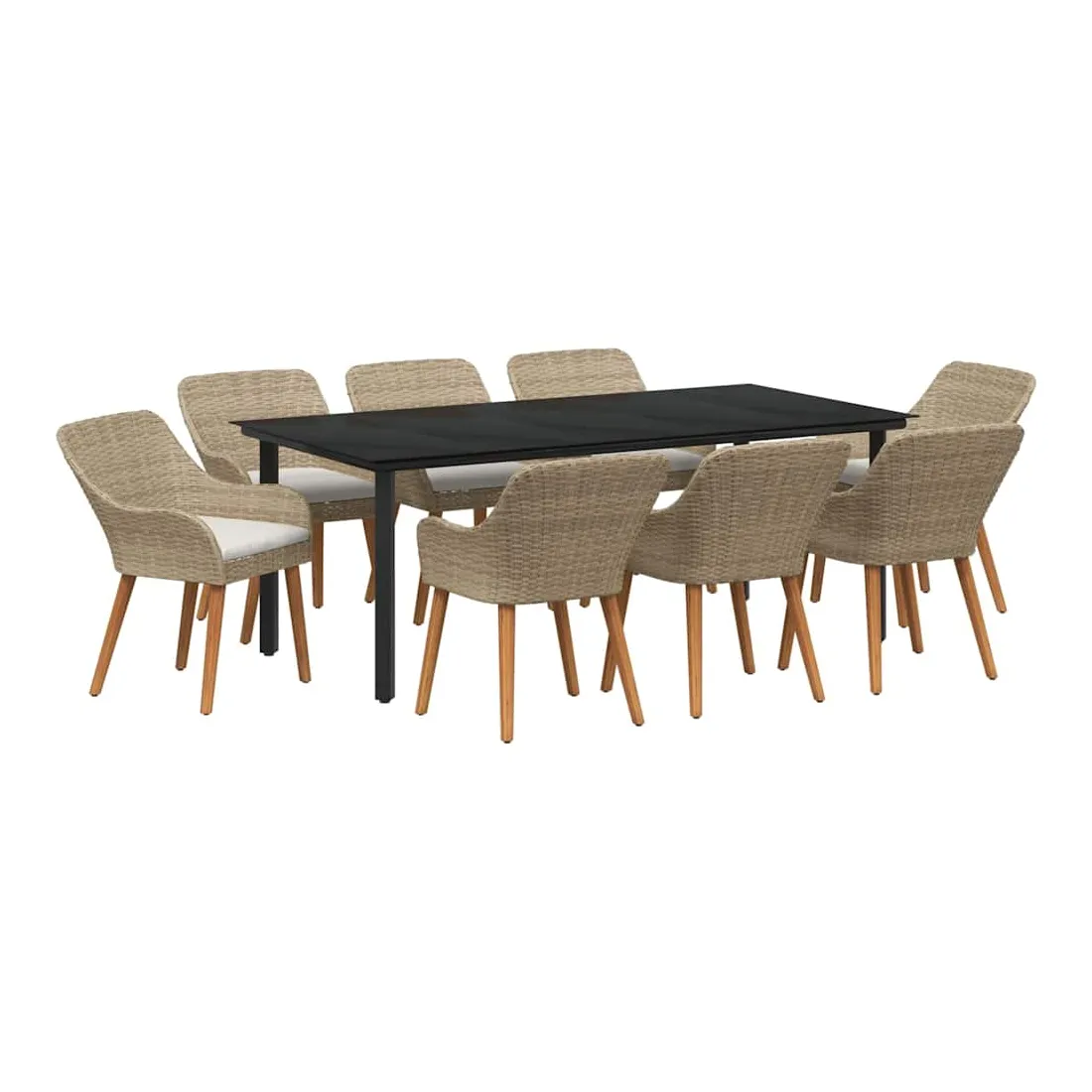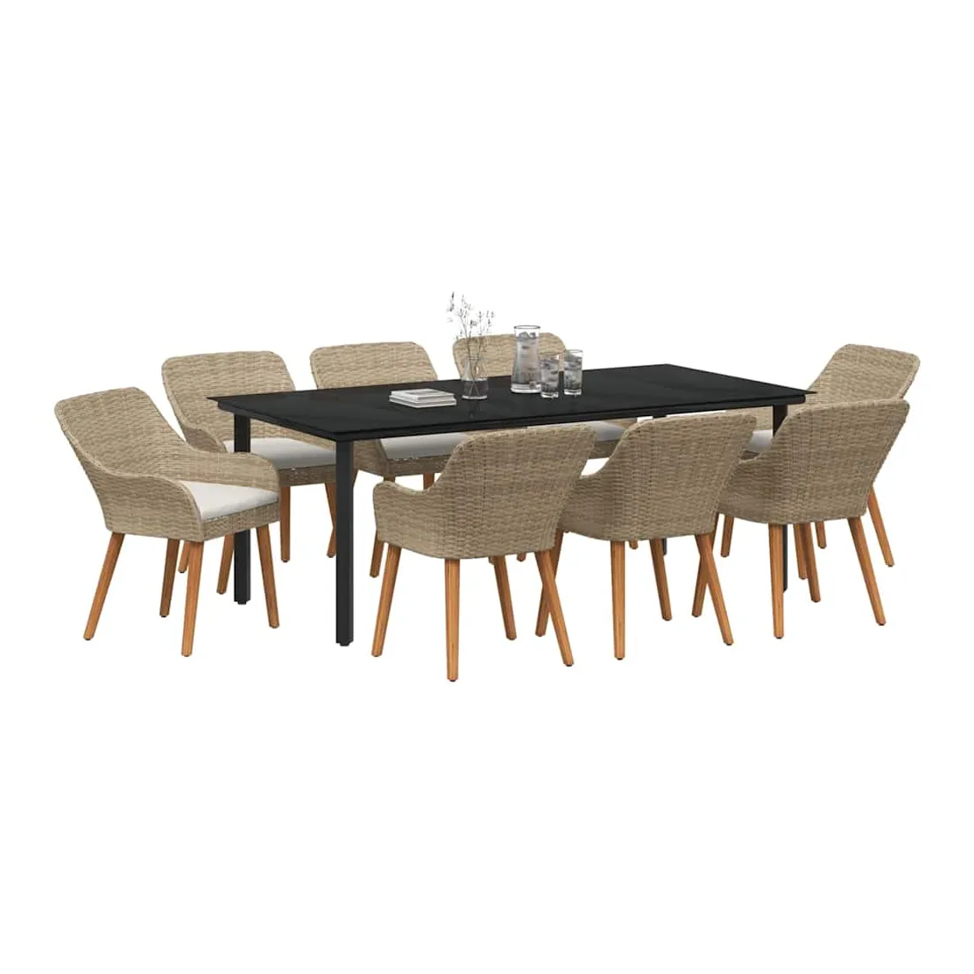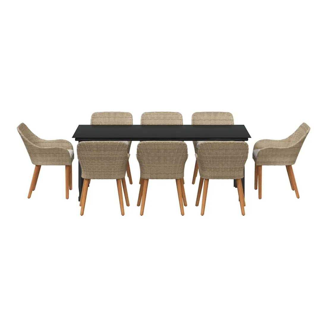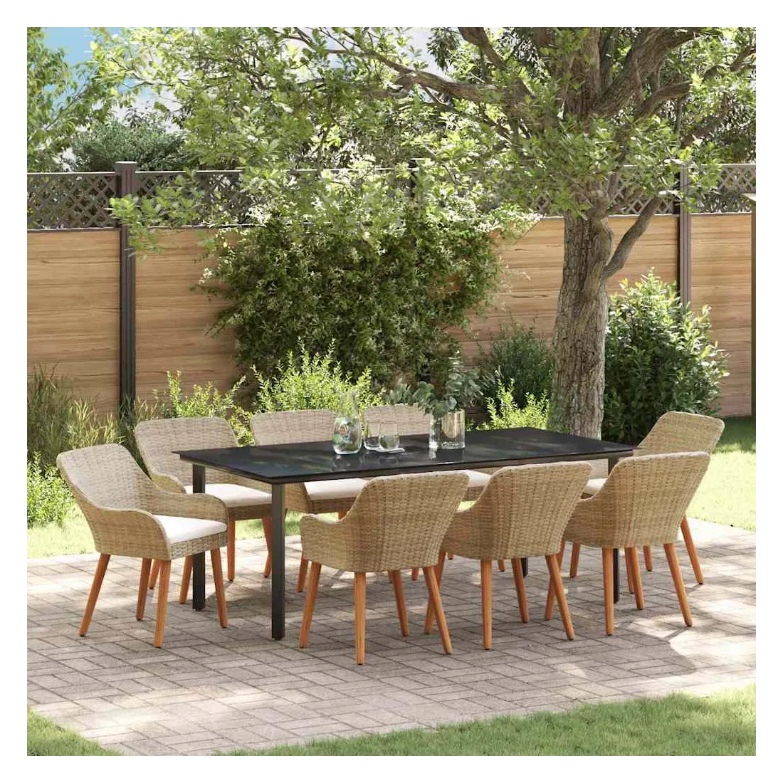 Ce superbe set de salle à manger de jardin change n'importe quel espace extérieur en un coin moderne. Fait pour ceux qui aiment les lignes claires et le style contemporain, il combine sophistication et utilité. Son cadre élégant attire le regard, que ce soit pour un brunch en toute intimité ou un dîner animé. La simplicité du set, combinée à un mix de matériaux trendy, lui permet de s'intégrer facilement dans des jardins modernes ou des terrasses stylées. Profitez de moments fun tout en vous relaxant dans le confort et la beauté. Poly Rattan Haute Densité : Ce set est fait en poly rattan connu pour sa durabilité et sa résistance aux UV. Ce matériau endure les intempéries tout en offrant un confort d'assise et en gardant un look élégant pour n'importe quel jardin ou terrasse. Arrangement Complet de Sièges : Notre set inclut des chaises stylées et une table de patio avec un plateau en verre trempé. Chaque chaise est équipée de coussins résistants aux intempéries pour plus de confort et de style, et la table en verre trempé apporte une touche d'élégance et se nettoie facilement. Construction Supérieure : Les pieds en acier recouvert de poudre garantissent la stabilité et supportent jusqu'à 110 kg par chaise. Une structure solide pour que votre mobilier de jardin reste en bon état dans le temps. Style Moderne : Avec un design minimaliste, le style moderne de ce set s'adapte facilement à des ambiances contemporaines. Chic, sophistiqué et bien conçu, il est parfait pour ceux qui cherchent à marier forme et fonction dans leur espace extérieur. Entretien Simple : Pas de tracas pour l'entretien de ce set ; un coup de chiffon humide par ci par là et c'est bon. L'assemblage nécessite deux personnes et un tournevis, pour une installation simple.