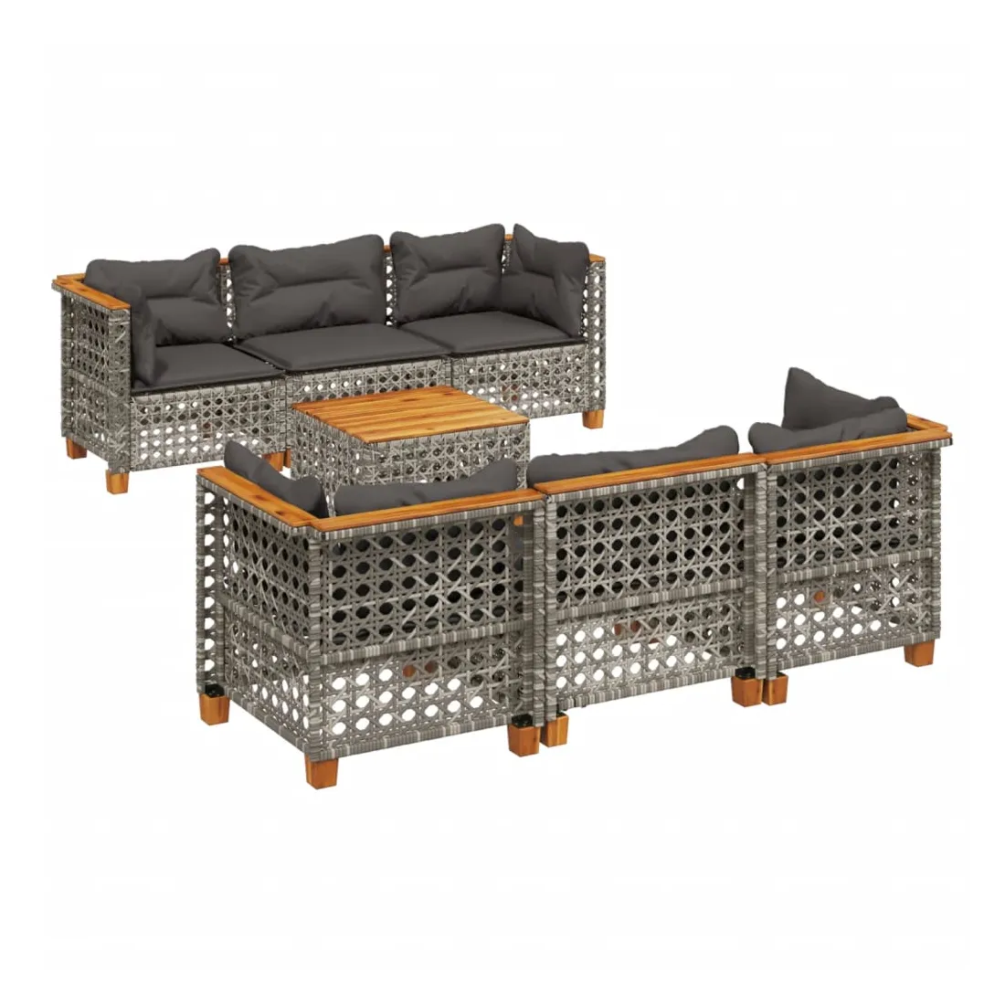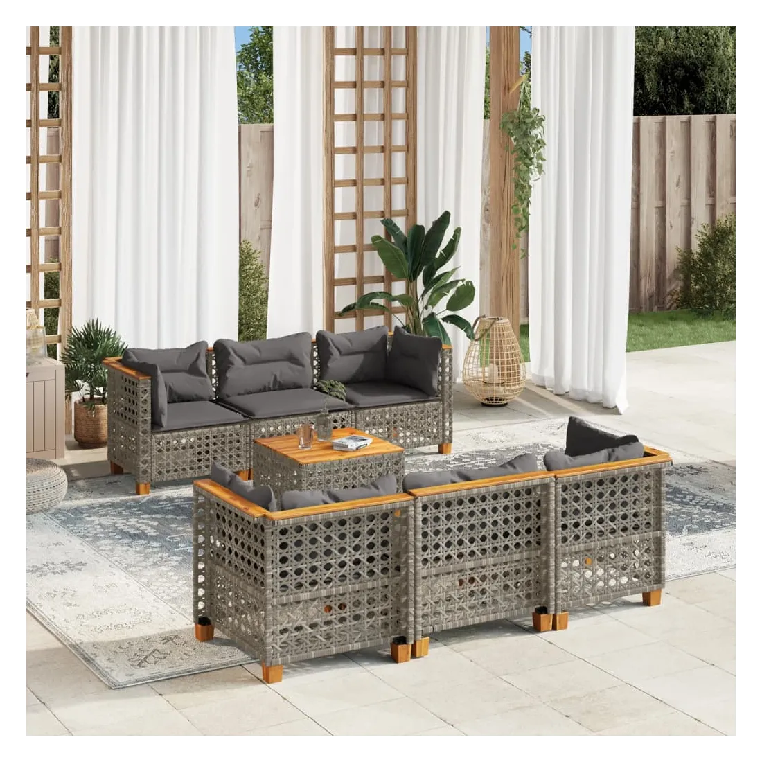 Cet ensemble de canapés de jardin est le complément parfait de votre arrière-cour, terrasse ou patio, offrant un espace confortable et accueillant pour discuter avec la famille et les amis ou simplement se détendre et profiter de l'extérieur. Matériau durable : la résine tressée, également connue sous le nom de poly rotin, est un matériau synthétique solide et nécessitant peu d'entretien qui ressemble au rotin naturel. Il est léger, facile à nettoyer et couramment utilisé pour les meubles d'extérieur en raison de sa durabilité et de ses propriétés de résistance aux intempéries.Expérience d'assise confortable : ce mobilier d'extérieur, doté de coussins épais, offre une expérience d'assise confortable.Housse amovible et lavable : ces coussins de siège sont dotés de housses amovibles pour un lavage et un entretien faciles.Dessus stable et facile à nettoyer : cette table de jardin a un dessus en bois d'acacia robuste, durable et facile à nettoyer avec un chiffon humide.Conception modulaire : cet ensemble de meubles d'extérieur a une conception modulaire, ce qui le rend complètement flexible et facile à déplacer, afin que vous puissiez créer un agencement de meubles d'extérieur personnalisé. Bon à savoir :Pour que vos meubles d'extérieur restent beaux, nous vous recommandons de les protéger avec une housse imperméable.