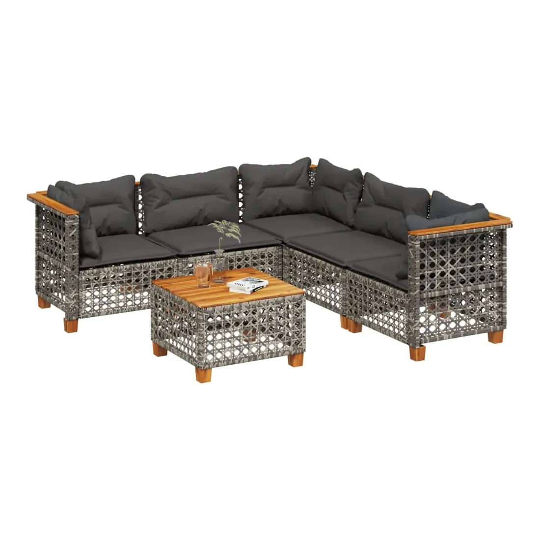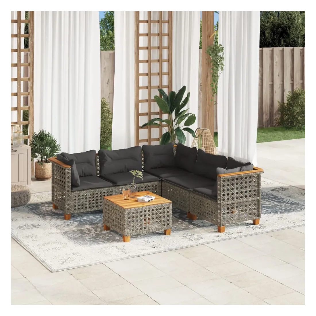Cet ensemble de canapés de jardin est le complément parfait de votre arrière-cour, terrasse ou patio, offrant un espace confortable et accueillant pour discuter avec la famille et les amis ou simplement se détendre et profiter de l'extérieur. Matériau durable : la résine tressée, également connue sous le nom de poly rotin, est un matériau synthétique solide et nécessitant peu d'entretien qui ressemble au rotin naturel. Il est léger, facile à nettoyer et couramment utilisé pour les meubles d'extérieur en raison de sa durabilité et de ses propriétés de résistance aux intempéries.Expérience d'assise confortable : ce mobilier d'extérieur, doté de coussins épais, offre une expérience d'assise confortable.Housse amovible et lavable : ces coussins de siège sont dotés de housses amovibles pour un lavage et un entretien faciles.Dessus stable et facile à nettoyer : cette table de jardin a un dessus en bois d'acacia robuste, durable et facile à nettoyer avec un chiffon humide.Conception modulaire : cet ensemble de meubles d'extérieur a une conception modulaire, ce qui le rend complètement flexible et facile à déplacer, afin que vous puissiez créer un agencement de meubles d'extérieur personnalisé. Bon à savoir :Pour que vos meubles d'extérieur restent beaux, nous vous recommandons de les protéger avec une housse imperméable.