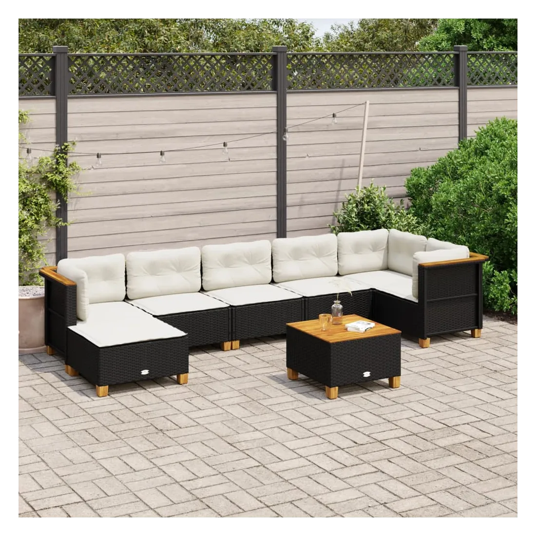 Cet ensemble de canapés de jardin est le complément parfait de votre arrière-cour, terrasse ou patio, offrant un espace confortable et accueillant pour discuter avec la famille et les amis ou simplement se détendre et profiter de l'extérieur. Matériau durable : la résine tressée, également connue sous le nom de poly rotin, est un matériau synthétique solide et nécessitant peu d'entretien qui ressemble au rotin naturel. Il est léger, facile à nettoyer et couramment utilisé pour les meubles d'extérieur en raison de sa durabilité et de ses propriétés de résistance aux intempéries.Expérience d'assise confortable : ce mobilier d'extérieur, doté de coussins épais, offre une expérience d'assise confortable.Housse amovible et lavable : ces coussins de siège sont dotés de housses amovibles pour un lavage et un entretien faciles.Dessus stable et facile à nettoyer : cette table de jardin a un dessus en bois d'acacia robuste, durable et facile à nettoyer avec un chiffon humide.Conception modulaire : cet ensemble de meubles d'extérieur a une conception modulaire, ce qui le rend complètement flexible et facile à déplacer, afin que vous puissiez créer un agencement de meubles d'extérieur personnalisé. Bon à savoir :Pour que vos meubles d'extérieur restent beaux, nous vous recommandons de les protéger avec une housse imperméable.