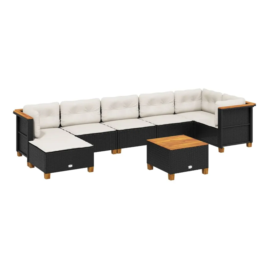 Salon de jardin 8 pcs avec coussins noir résine tressée