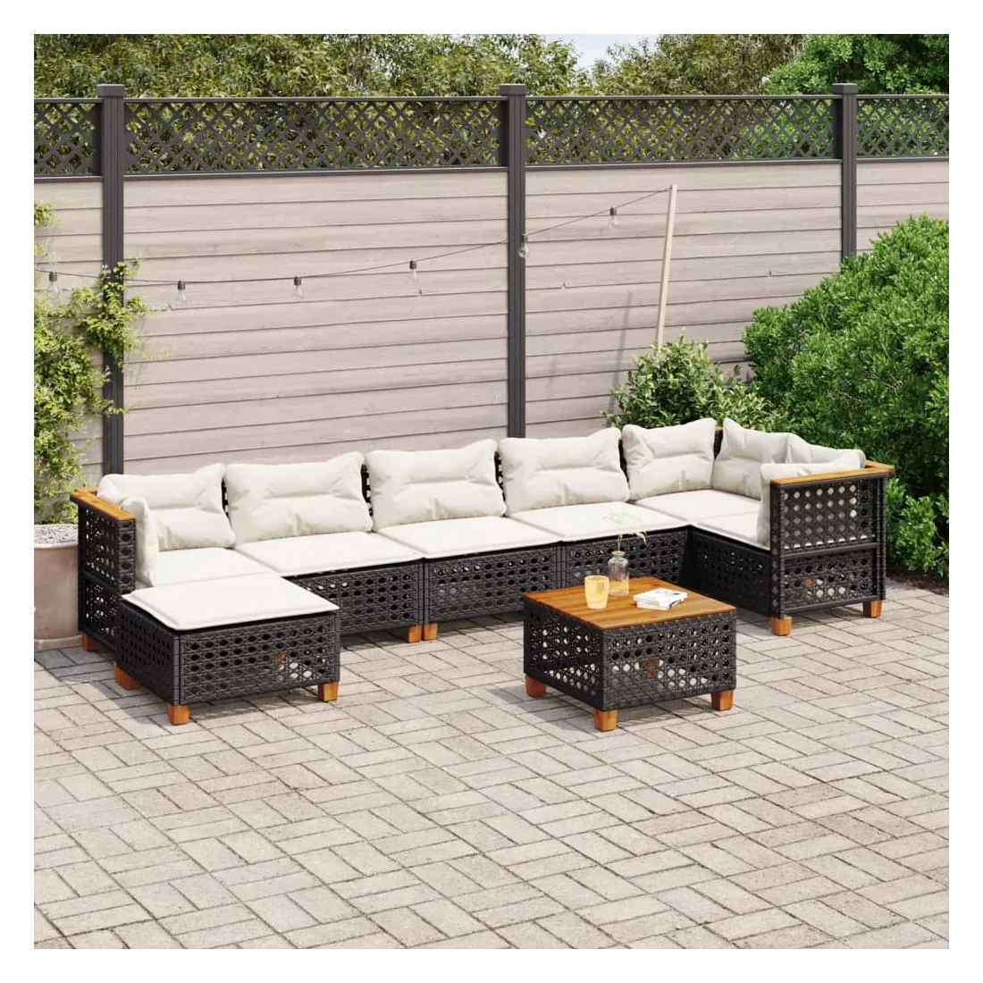 Cet ensemble de canapés de jardin est le complément parfait de votre arrière-cour, terrasse ou patio, offrant un espace confortable et accueillant pour discuter avec la famille et les amis ou simplement se détendre et profiter de l'extérieur. Matériau durable : la résine tressée, également connue sous le nom de poly rotin, est un matériau synthétique solide et nécessitant peu d'entretien qui ressemble au rotin naturel. Il est léger, facile à nettoyer et couramment utilisé pour les meubles d'extérieur en raison de sa durabilité et de ses propriétés de résistance aux intempéries.Expérience d'assise confortable : ce mobilier d'extérieur, doté de coussins épais, offre une expérience d'assise confortable.Housse amovible et lavable : ces coussins de siège sont dotés de housses amovibles pour un lavage et un entretien faciles.Dessus stable et facile à nettoyer : cette table de jardin a un dessus en bois d'acacia robuste, durable et facile à nettoyer avec un chiffon humide.Conception modulaire : cet ensemble de meubles d'extérieur a une conception modulaire, ce qui le rend complètement flexible et facile à déplacer, afin que vous puissiez créer un agencement de meubles d'extérieur personnalisé. Bon à savoir :Pour que vos meubles d'extérieur restent beaux, nous vous recommandons de les protéger avec une housse imperméable.