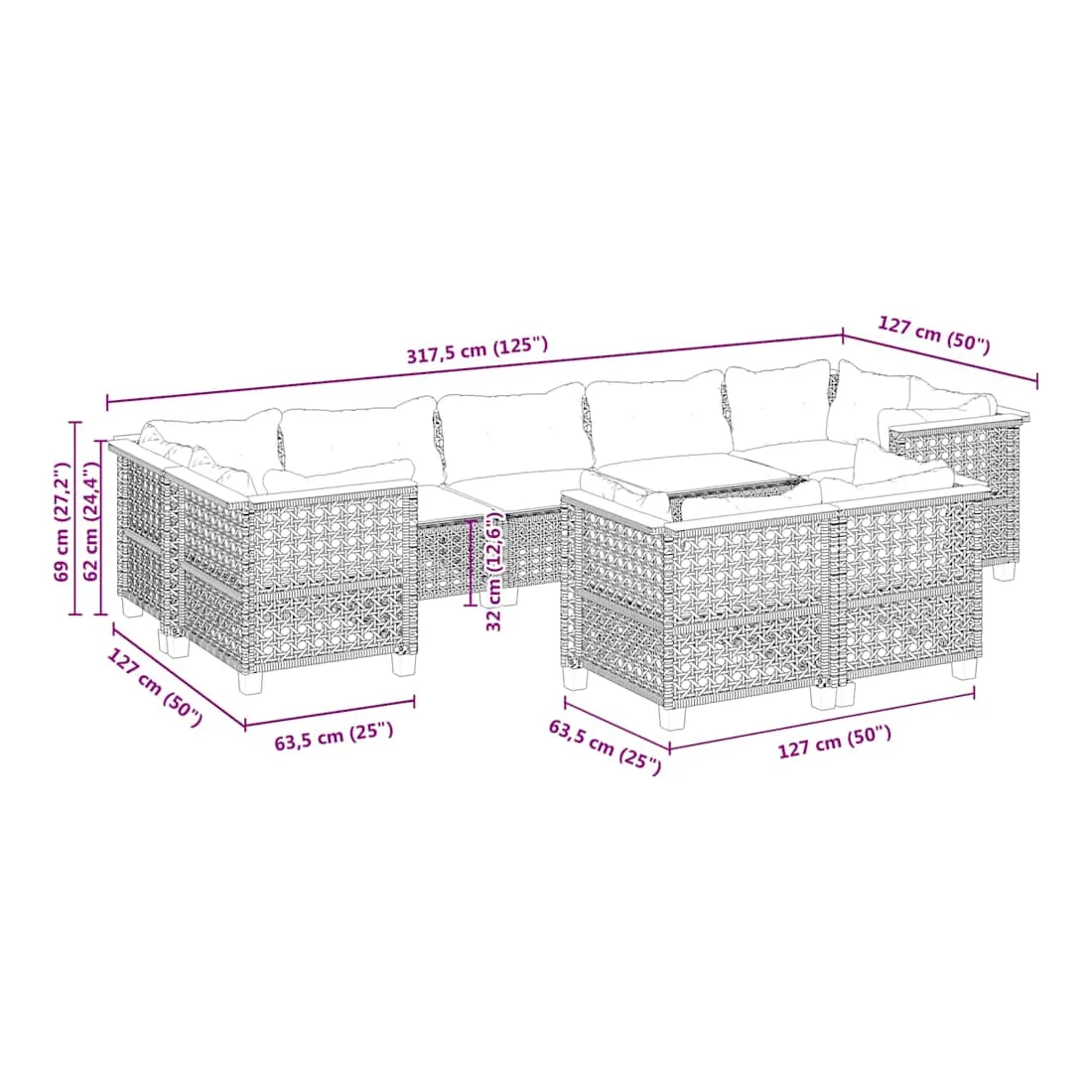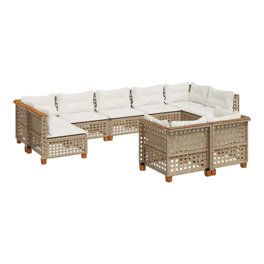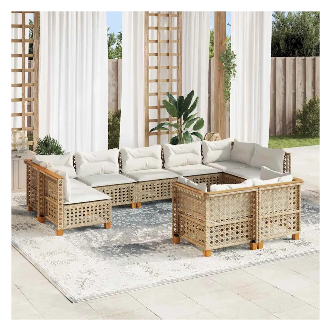 Salon de jardin avec coussins 9 pcs beige résine tressée