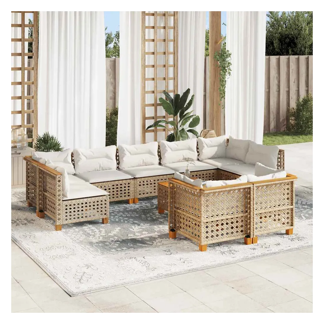 Salon de jardin avec coussins 10 pcs beige résine tressée