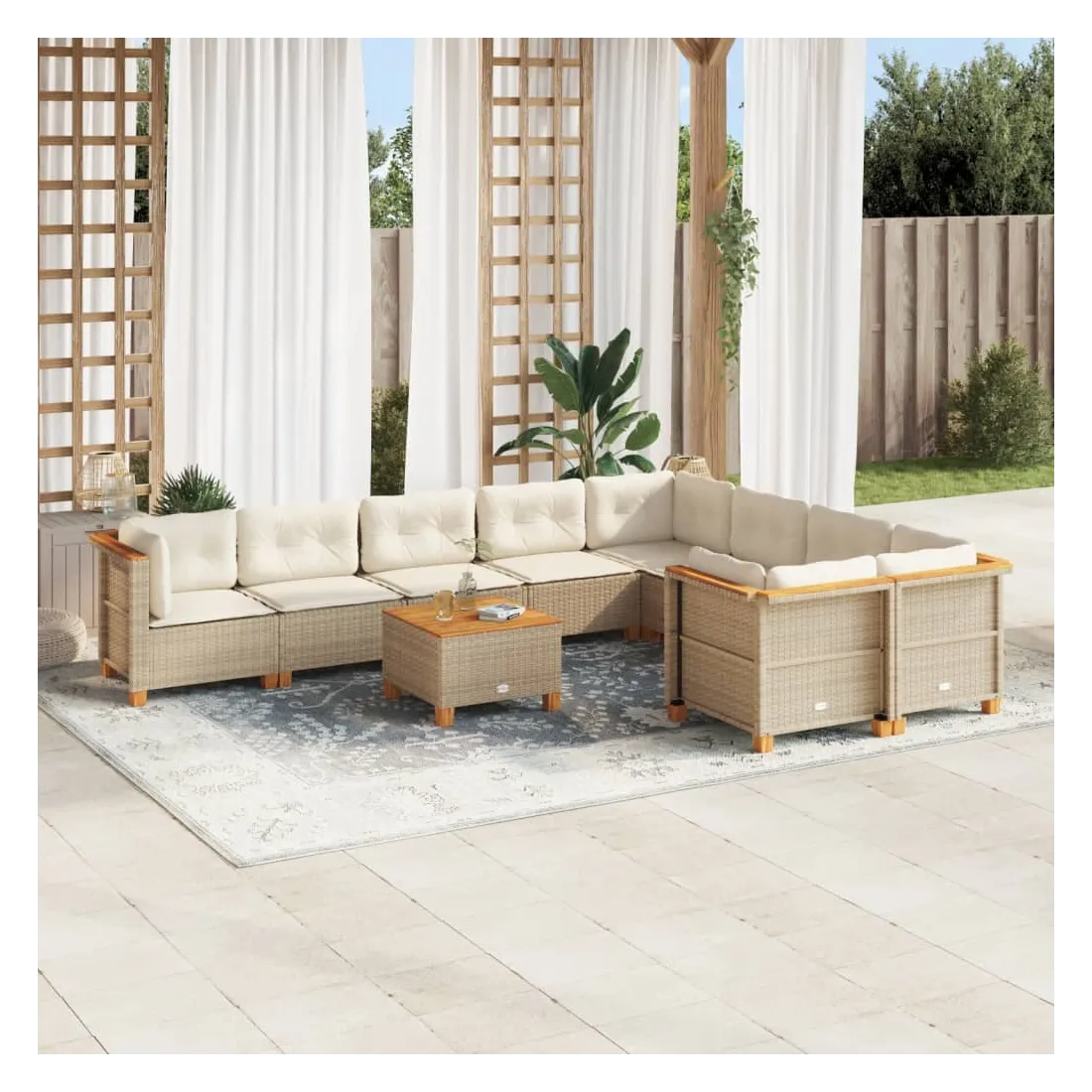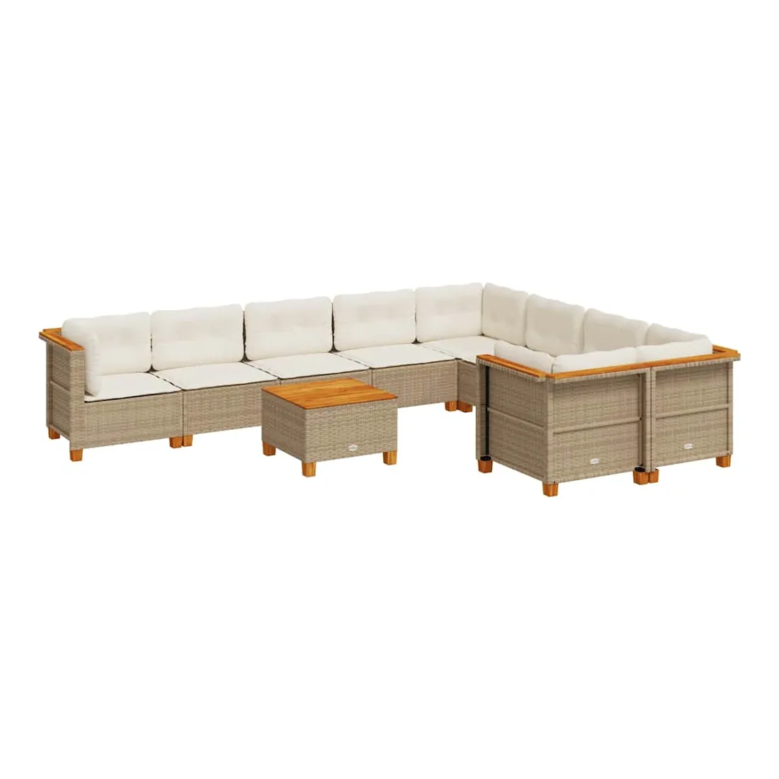 Salon de jardin avec coussins 10 pcs beige résine tressée