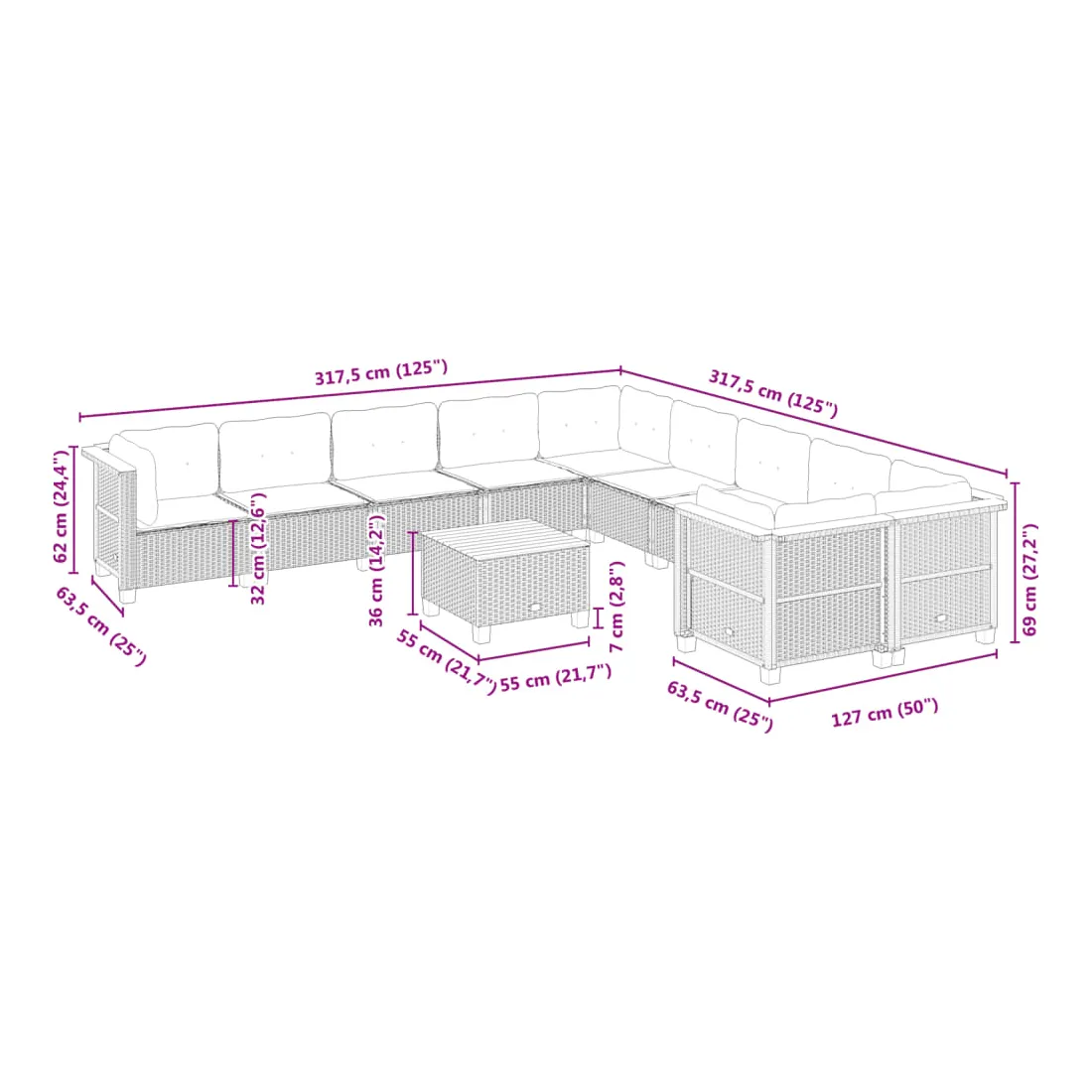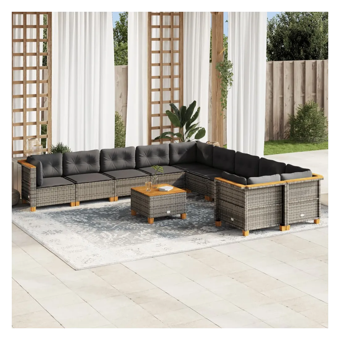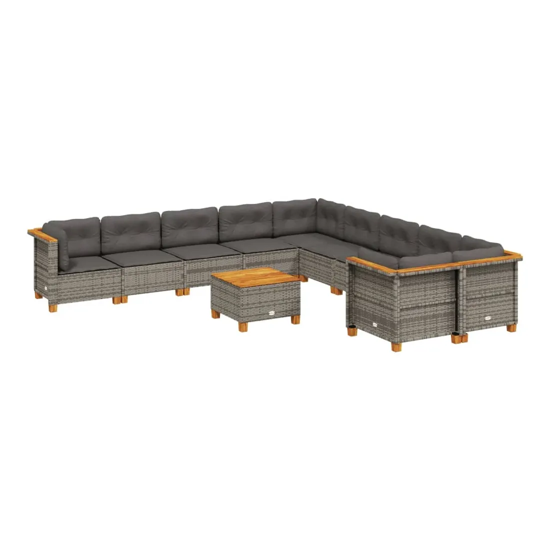 Salon de jardin 11 pcs avec coussins gris résine tressée