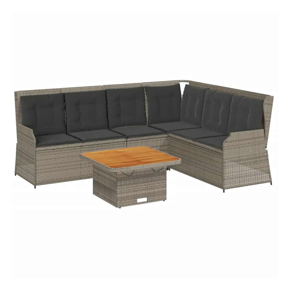 Cet ensemble de salon de jardin est le complément parfait de votre arrière-cour, terrasse ou patio, offrant un espace confortable et accueillant pour discuter avec la famille et les amis ou simplement se détendre et profiter de l'extérieur. Matériau durable : la résine tressée, également connue sous le nom de poly rotin, est un matériau synthétique solide et nécessitant peu d'entretien qui ressemble au rotin naturel. Elle est légère, facile à nettoyer et couramment utilisée pour les meubles d'extérieur en raison de sa durabilité et de ses propriétés de résistance aux intempéries.Dossier réglable : vous pouvez régler le dossier dans n'importe quelle position en tirant sur la poignée et le remettre rapidement dans sa position initiale.Housse amovible et lavable : ces coussins de siège sont dotés de housses amovibles pour un lavage et un entretien faciles.Expérience d'assise confortable : ce mobilier d'extérieur, doté de coussins épais, offre une expérience d'assise confortable.Dessus stable et facile à nettoyer : cette table de jardin a un dessus en bois d'acacia robuste, durable et facile à nettoyer avec un chiffon humide.Cadre robuste et stable : le cadre en acier enduit de poudre est solide, stable, durable et résistant à la corrosion et aux intempéries, ce qui garantit des performances durables. Bon à savoir :Pour que vos meubles d'extérieur restent beaux, nous vous recommandons de les protéger avec une housse imperméable.