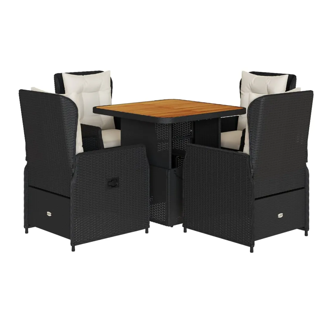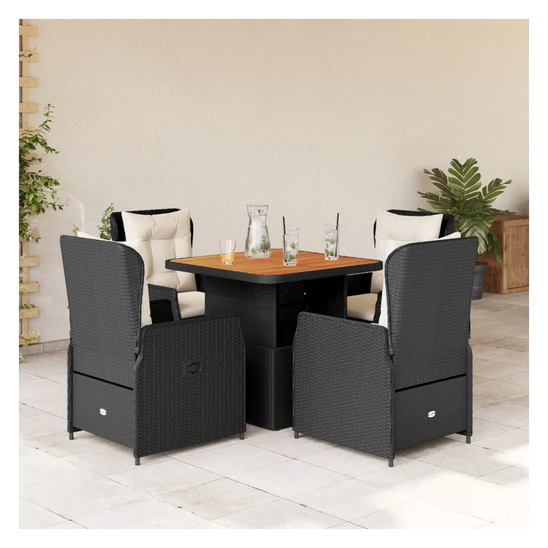 Cet ensemble de salle à manger de jardin est un excellent choix pour les repas en plein air ou pour vous détendre dans le jardin, dans l'arrière-cour ou sur la terrasse. Matériau durable : la résine tressée, également connue sous le nom de poly rotin, est un matériau synthétique solide et nécessitant peu d'entretien qui ressemble au rotin naturel. Il est léger, facile à nettoyer et couramment utilisé pour les meubles d'extérieur en raison de sa durabilité et de ses propriétés de résistance aux intempéries.Dossier réglable : ce siège de jardin est doté d'une poignée. Vous pouvez régler le dossier dans n'importe quelle position en tirant sur la poignée et le remettre rapidement dans sa position initiale.Housse amovible et lavable : le coussin de siège est doté d'une housse amovible pour un lavage et un entretien faciles.Dessus de table réglable : le dessus de table peut être soulevé pour rendre la table plus haute, ce qui transforme la table d'extérieur d'une table basse à une table de salle à manger. Elle est parfaite pour recevoir des invités ou prendre des repas à l'extérieur.Dessus stable et facile à nettoyer : cette table de jardin a un dessus en bois d'acacia robuste, durable et facile à nettoyer avec un chiffon humide. Bon à savoir :Pour que vos meubles d'extérieur restent beaux, nous vous recommandons de les protéger avec une housse imperméable.