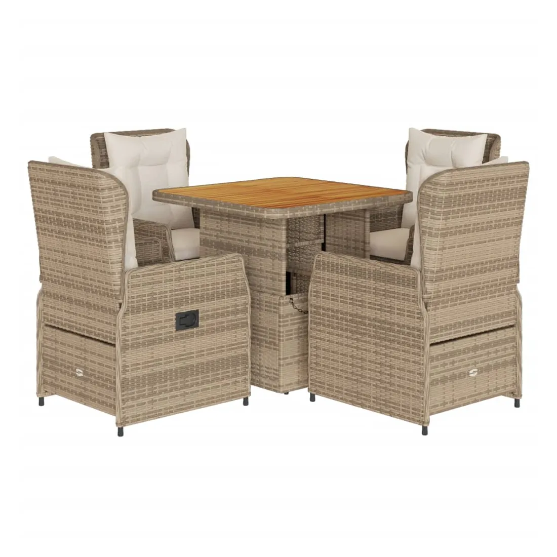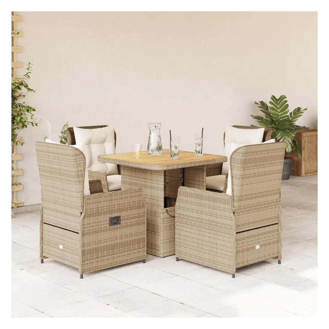 vidaXLCet ensemble de salle à manger de jardin est un excellent choix pour les repas en plein air ou pour vous détendre dans le jardin, dans l'arrière-cour ou sur la terrasse. Matériau durable : la résine tressée, également connue sous le nom de poly rotin, est un matériau synthétique solide et nécessitant peu d'entretien qui ressemble au rotin naturel. Il est léger, facile à nettoyer et couramment utilisé pour les meubles d'extérieur en raison de sa durabilité et de ses propriétés de résistance aux intempéries.Dossier réglable : ce siège de jardin est doté d'une poignée. Vous pouvez régler le dossier dans n'importe quelle position en tirant sur la poignée et le remettre rapidement dans sa position initiale.Housse amovible et lavable : le coussin de siège est doté d'une housse amovible pour un lavage et un entretien faciles.Dessus de table réglable : le dessus de table peut être soulevé pour rendre la table plus haute, ce qui transforme la table d'extérieur d'une table basse à une table de salle à manger. Elle est parfaite pour recevoir des invités ou prendre des repas à l'extérieur.Dessus stable et facile à nettoyer : cette table de jardin a un dessus en bois d'acacia robuste, durable et facile à nettoyer avec un chiffon humide. Bon à savoir :Pour que vos meubles d'extérieur restent beaux, nous vous recommandons de les protéger avec une housse imperméable.