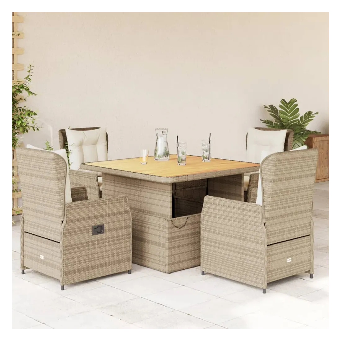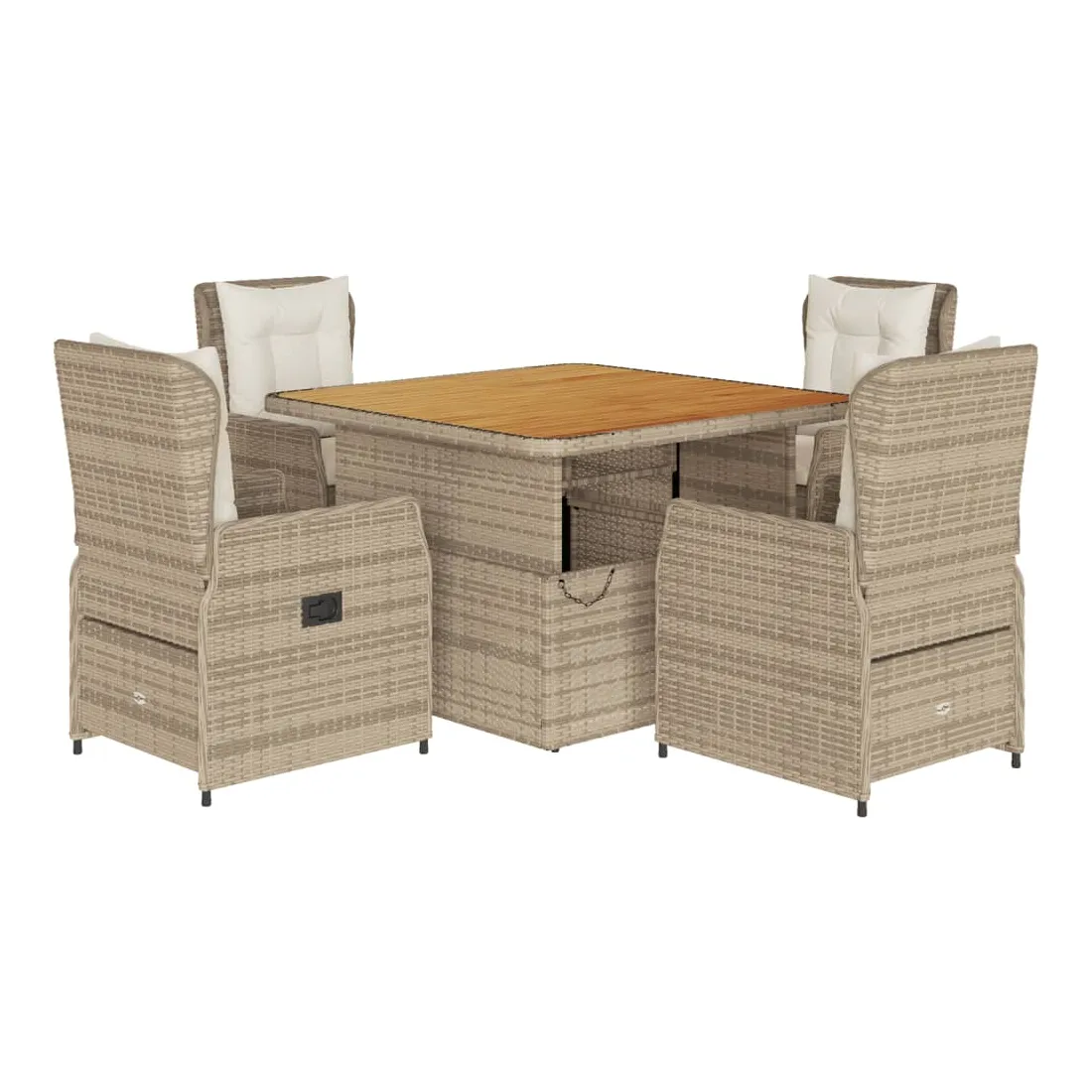 Ensemble à manger de jardin avec coussins 5pcs Beige poly rotin