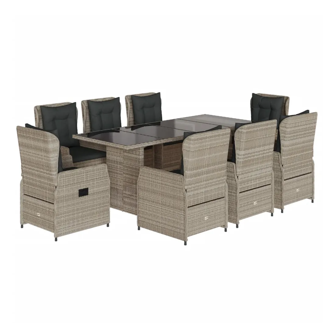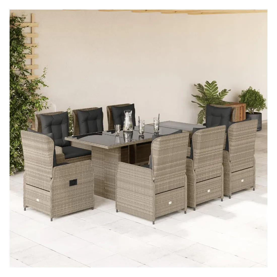 Ensemble à manger de jardin et coussins 9 pcs gris clair rotin