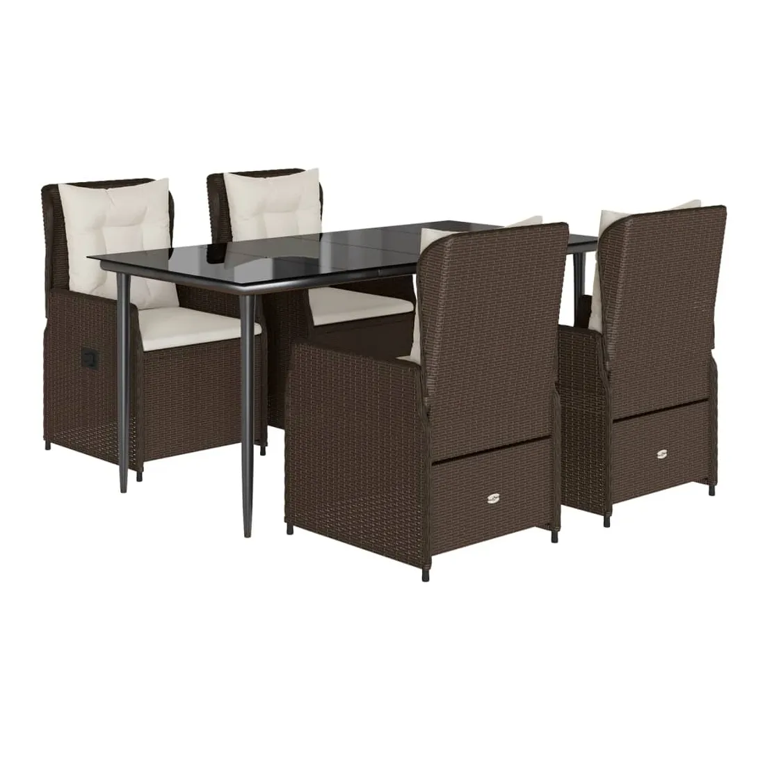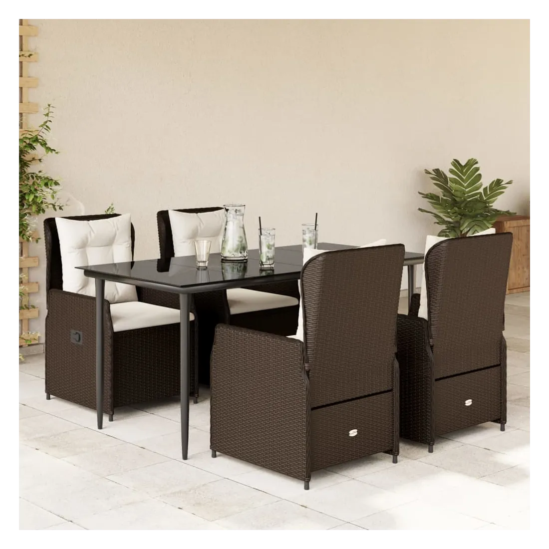 Cet ensemble de salle à manger de jardin est un excellent choix pour les repas en plein air ou pour vous détendre dans le jardin, dans l'arrière-cour ou sur la terrasse. Matériau durable : la résine tressée, également connue sous le nom de poly rotin, est un matériau synthétique solide et nécessitant peu d'entretien qui ressemble au rotin naturel. Il est léger, facile à nettoyer et couramment utilisé pour les meubles d'extérieur en raison de sa durabilité et de ses propriétés de résistance aux intempéries.Dossier réglable : ce siège de jardin est doté d'une poignée. Vous pouvez régler le dossier dans n'importe quelle position en tirant sur la poignée et le remettre rapidement dans sa position initiale.Expérience d'assise confortable : ce mobilier d'extérieur, doté de coussins épais, offre une expérience d'assise confortable.Housse amovible et lavable : le coussin de siège est doté d'une housse amovible pour un lavage et un entretien faciles.Dessus en verre : le dessus de la table d'extérieur est fabriqué en verre trempé solide et durable, ce qui le rend facile à nettoyer avec un chiffon humide et ajoute une touche d'élégance à votre espace extérieur. Bon à savoir :Pour que vos meubles d'extérieur restent beaux, nous vous recommandons de les protéger avec une housse imperméable.