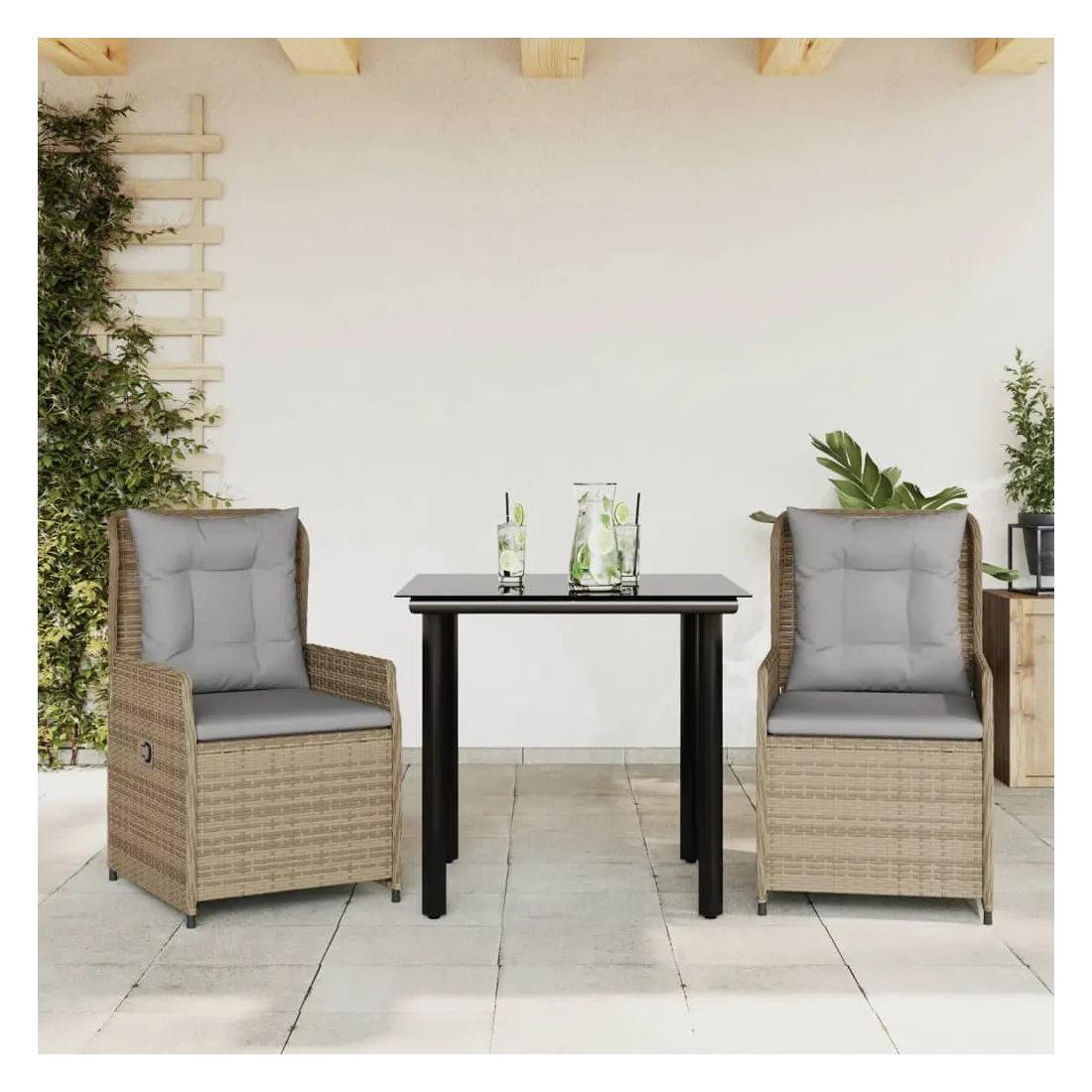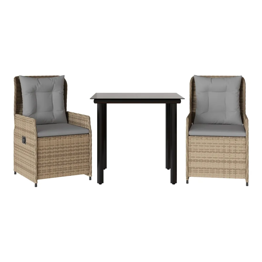 Cet ensemble de salle à manger de jardin est un excellent choix pour les repas en plein air ou pour vous détendre dans le jardin, dans l'arrière-cour ou sur la terrasse. Matériau durable : la résine tressée, également connue sous le nom de poly rotin, est un matériau synthétique solide et nécessitant peu d'entretien qui ressemble au rotin naturel. Il est léger, facile à nettoyer et couramment utilisé pour les meubles d'extérieur en raison de sa durabilité et de ses propriétés de résistance aux intempéries.Dossier réglable : ce siège de jardin est doté d'une poignée. Vous pouvez régler le dossier dans n'importe quelle position en tirant sur la poignée et le remettre rapidement dans sa position initiale.Expérience d'assise confortable : ce mobilier d'extérieur, doté de coussins épais, offre une expérience d'assise confortable.Housse amovible et lavable : le coussin de siège est doté d'une housse amovible pour un lavage et un entretien faciles.Dessus en verre : le dessus de la table d'extérieur est fabriqué en verre trempé solide et durable, ce qui le rend facile à nettoyer avec un chiffon humide et ajoute une touche d'élégance à votre espace extérieur. Bon à savoir :Pour que vos meubles d'extérieur restent beaux, nous vous recommandons de les protéger avec une housse imperméable.