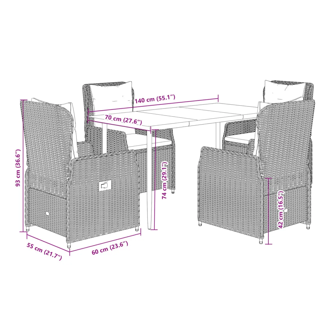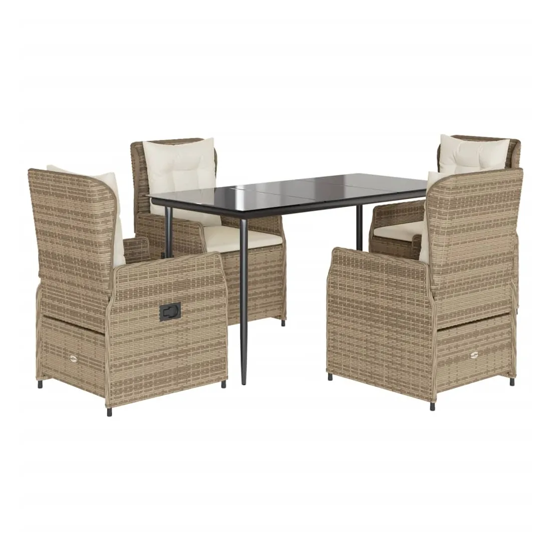 vidaXLCet ensemble de salle à manger de jardin est un excellent choix pour les repas en plein air ou pour vous détendre dans le jardin, dans l'arrière-cour ou sur la terrasse. Matériau durable : la résine tressée, également connue sous le nom de poly rotin, est un matériau synthétique solide et nécessitant peu d'entretien qui ressemble au rotin naturel. Il est léger, facile à nettoyer et couramment utilisé pour les meubles d'extérieur en raison de sa durabilité et de ses propriétés de résistance aux intempéries.Dossier réglable : ce siège de jardin est doté d'une poignée. Vous pouvez régler le dossier dans n'importe quelle position en tirant sur la poignée et le remettre rapidement dans sa position initiale.Expérience d'assise confortable : ce mobilier d'extérieur, doté de coussins épais, offre une expérience d'assise confortable.Housse amovible et lavable : le coussin de siège est doté d'une housse amovible pour un lavage et un entretien faciles.Dessus en verre : le dessus de la table d'extérieur est fabriqué en verre trempé solide et durable, ce qui le rend facile à nettoyer avec un chiffon humide et ajoute une touche d'élégance à votre espace extérieur. Bon à savoir :Pour que vos meubles d'extérieur restent beaux, nous vous recommandons de les protéger avec une housse imperméable.