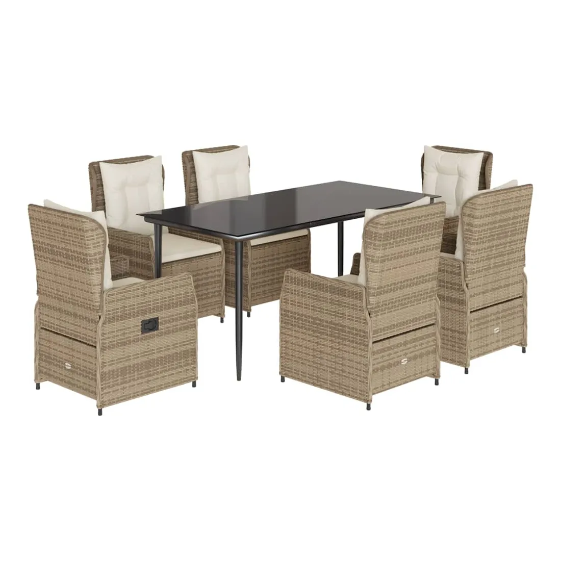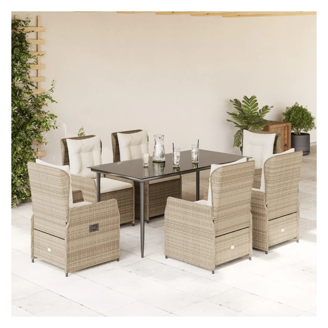 Ensemble à manger de jardin et coussins 7 pcs beige poly rotin