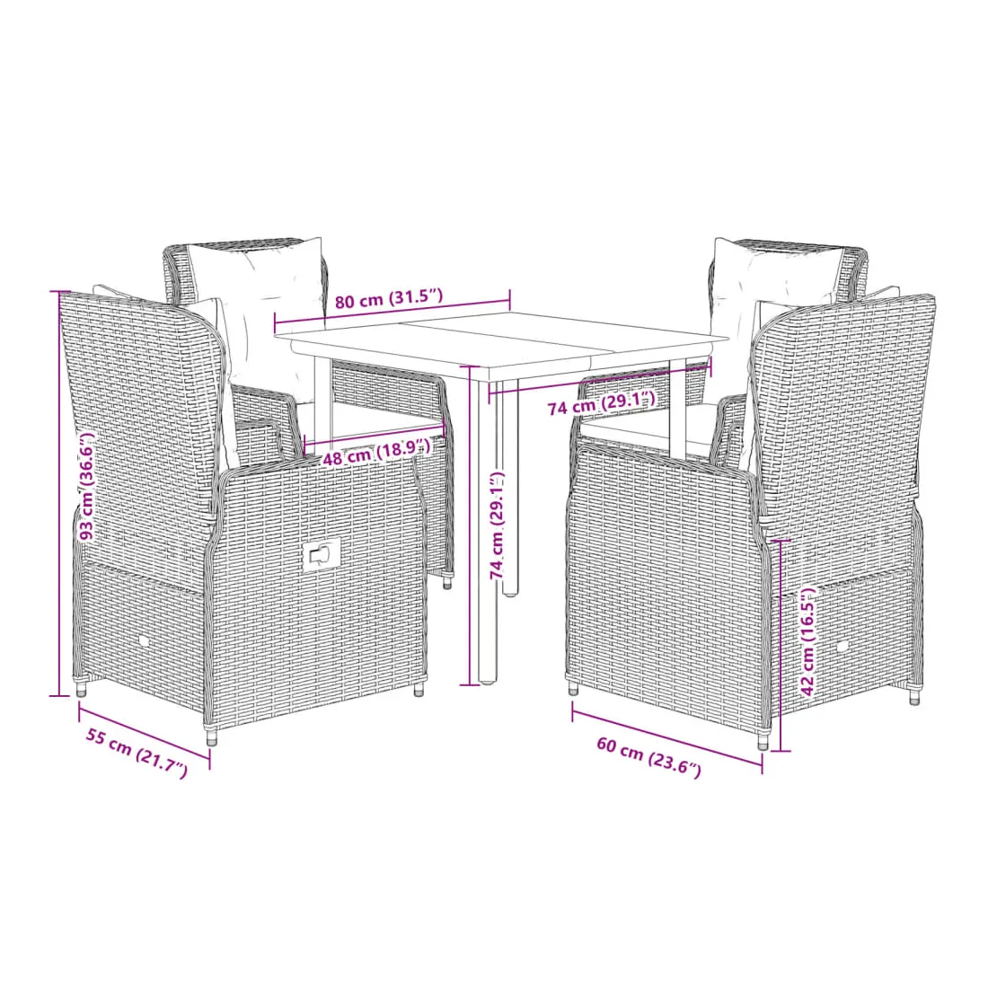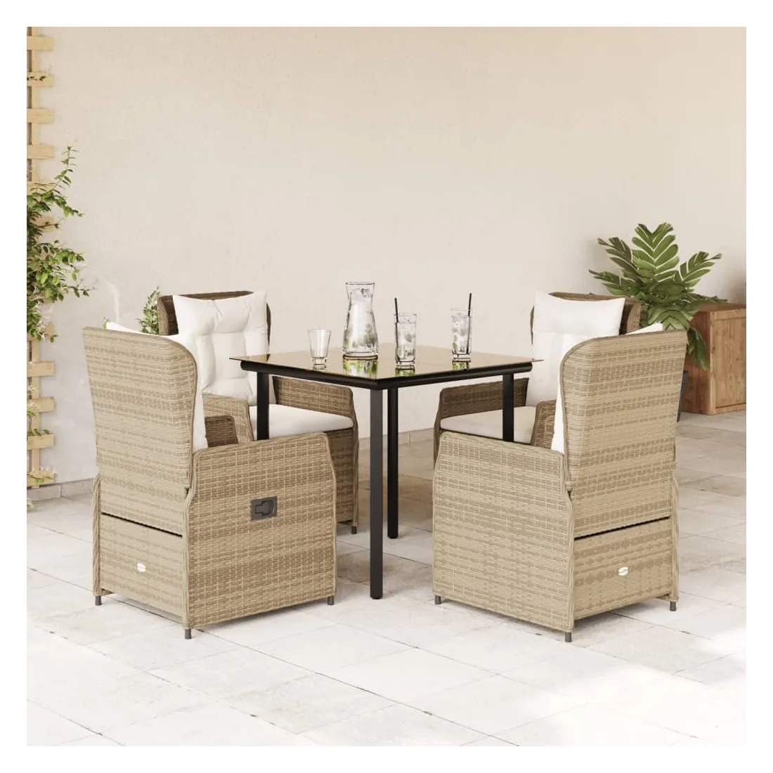 Ensemble à manger de jardin avec coussins 5pcs Beige poly rotin