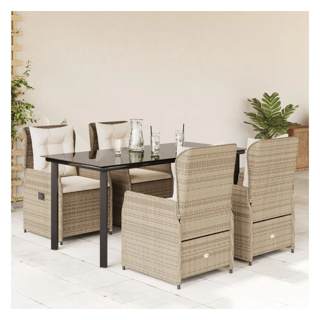 Ensemble à manger de jardin avec coussins 5pcs Beige poly rotin