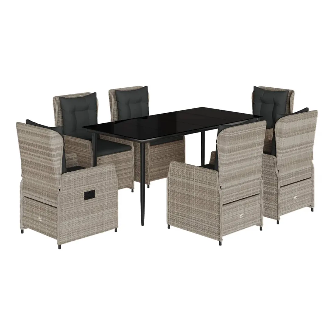 Cet ensemble de salle à manger de jardin est un excellent choix pour les repas en plein air ou pour vous détendre dans le jardin, dans l'arrière-cour ou sur la terrasse. Matériau durable : la résine tressée, également connue sous le nom de poly rotin, est un matériau synthétique solide et nécessitant peu d'entretien qui ressemble au rotin naturel. Il est léger, facile à nettoyer et couramment utilisé pour les meubles d'extérieur en raison de sa durabilité et de ses propriétés de résistance aux intempéries.Dossier réglable : ce siège de jardin est doté d'une poignée. Vous pouvez régler le dossier dans n'importe quelle position en tirant sur la poignée et le remettre rapidement dans sa position initiale.Expérience d'assise confortable : ce mobilier d'extérieur, doté de coussins épais, offre une expérience d'assise confortable.Housse amovible et lavable : le coussin de siège est doté d'une housse amovible pour un lavage et un entretien faciles.Dessus en verre : le dessus de la table d'extérieur est fabriqué en verre trempé solide et durable, ce qui le rend facile à nettoyer avec un chiffon humide et ajoute une touche d'élégance à votre espace extérieur. Bon à savoir :Pour que vos meubles d'extérieur restent beaux, nous vous recommandons de les protéger avec une housse imperméable.