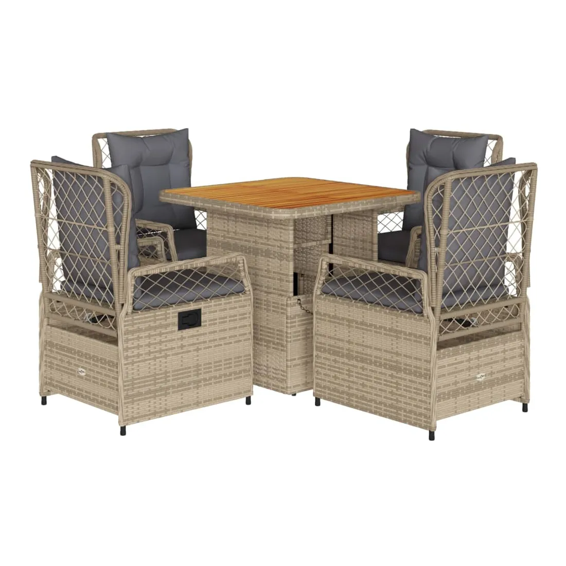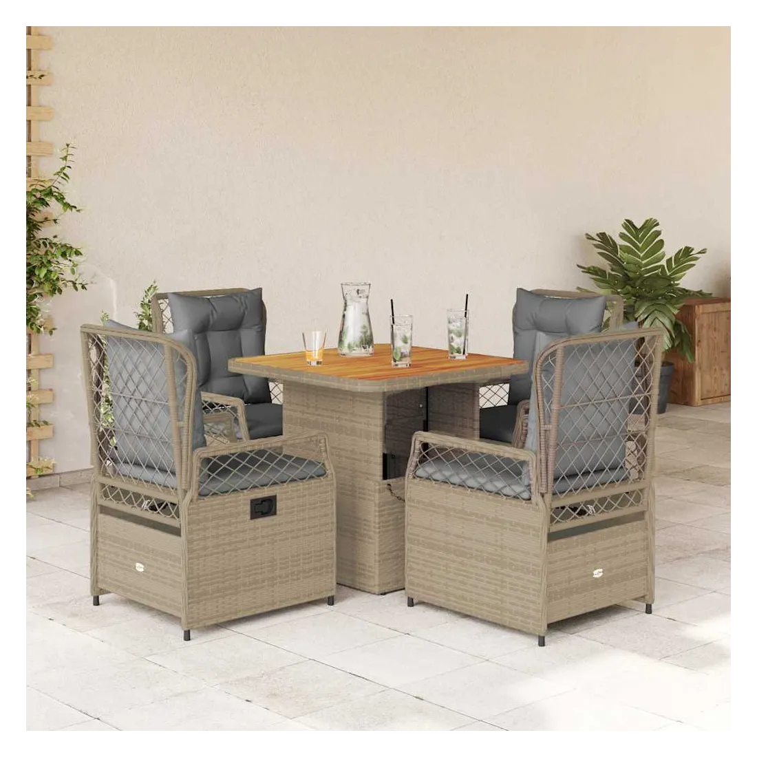 Cet ensemble de salle à manger de jardin est un excellent choix pour les repas en plein air ou pour vous détendre dans le jardin, dans l'arrière-cour ou sur la terrasse. Matériau durable : la résine tressée, également connue sous le nom de poly rotin, est un matériau synthétique solide et nécessitant peu d'entretien qui ressemble au rotin naturel. Il est léger, facile à nettoyer et couramment utilisé pour les meubles d'extérieur en raison de sa durabilité et de ses propriétés de résistance aux intempéries.Dossier réglable : ce siège de jardin est doté d'une poignée. Vous pouvez régler le dossier dans n'importe quelle position en tirant sur la poignée et le remettre rapidement dans sa position initiale.Housse amovible et lavable : le coussin de siège est doté d'une housse amovible pour un lavage et un entretien faciles.Dessus de table réglable : le dessus de table peut être soulevé pour rendre la table plus haute, ce qui transforme la table d'extérieur d'une table basse à une table de salle à manger. Elle est parfaite pour recevoir des invités ou prendre des repas à l'extérieur.Dessus stable et facile à nettoyer : cette table de jardin a un dessus en bois d'acacia robuste, durable et facile à nettoyer avec un chiffon humide. Bon à savoir :Pour que vos meubles d'extérieur restent beaux, nous vous recommandons de les protéger avec une housse imperméable.