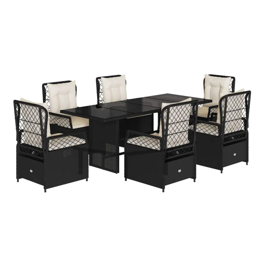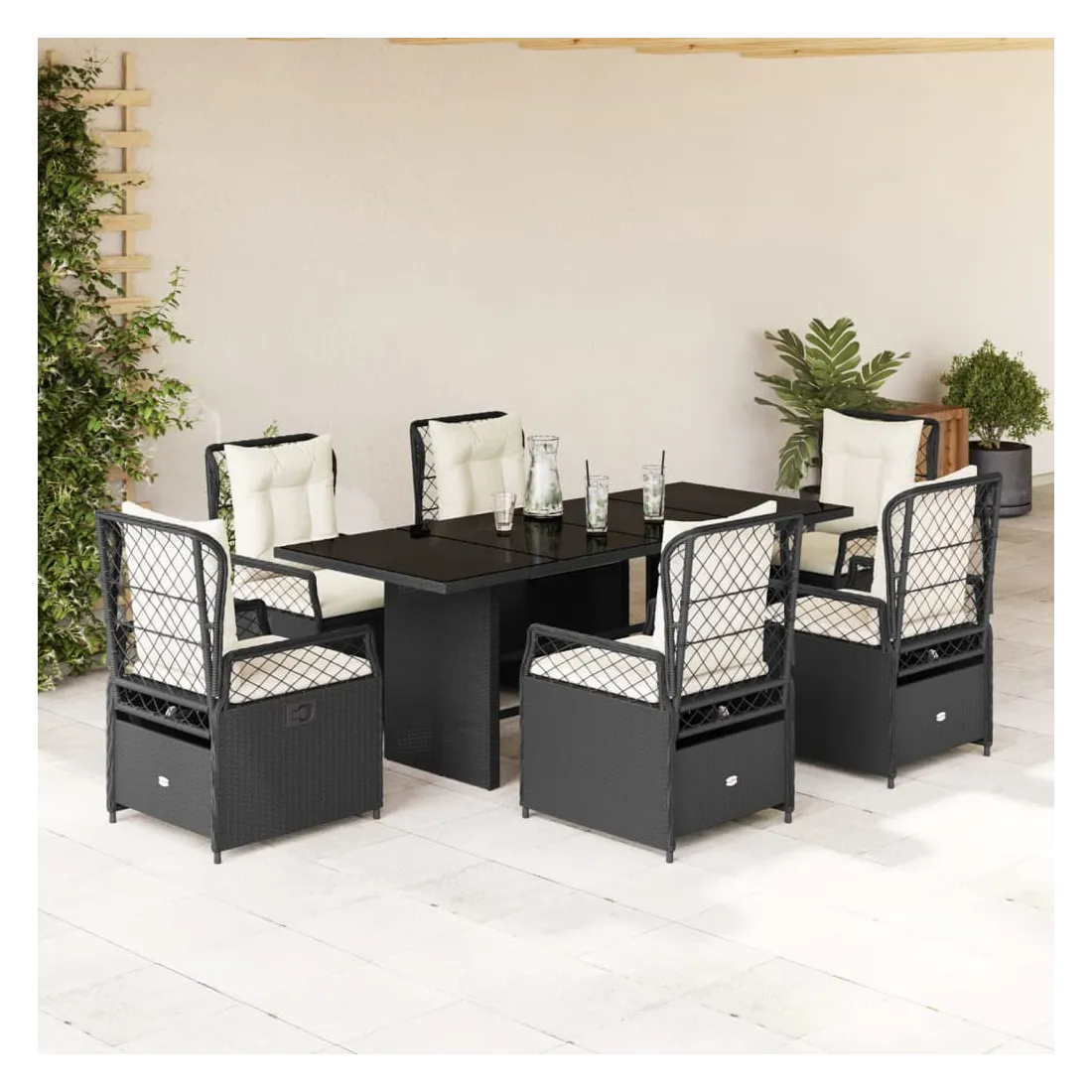 Cet ensemble de salle à manger de jardin est un excellent choix pour les repas en plein air ou pour vous détendre dans le jardin, dans l'arrière-cour ou sur la terrasse. Matériau durable : la résine tressée, également connue sous le nom de poly rotin, est un matériau synthétique solide et nécessitant peu d'entretien qui ressemble au rotin naturel. Il est léger, facile à nettoyer et couramment utilisé pour les meubles d'extérieur en raison de sa durabilité et de ses propriétés de résistance aux intempéries.Dossier réglable : ce siège de jardin est doté d'une poignée. Vous pouvez régler le dossier dans n'importe quelle position en tirant sur la poignée et le remettre rapidement dans sa position initiale.Expérience d'assise confortable : ce mobilier d'extérieur, doté de coussins épais, offre une expérience d'assise confortable.Housse amovible et lavable : le coussin de siège est doté d'une housse amovible pour un lavage et un entretien faciles.Dessus en verre : le dessus de la table d'extérieur est fabriqué en verre trempé solide et durable, ce qui le rend facile à nettoyer avec un chiffon humide et ajoute une touche d'élégance à votre espace extérieur. Bon à savoir :Pour que vos meubles d'extérieur restent beaux, nous vous recommandons de les protéger avec une housse imperméable.