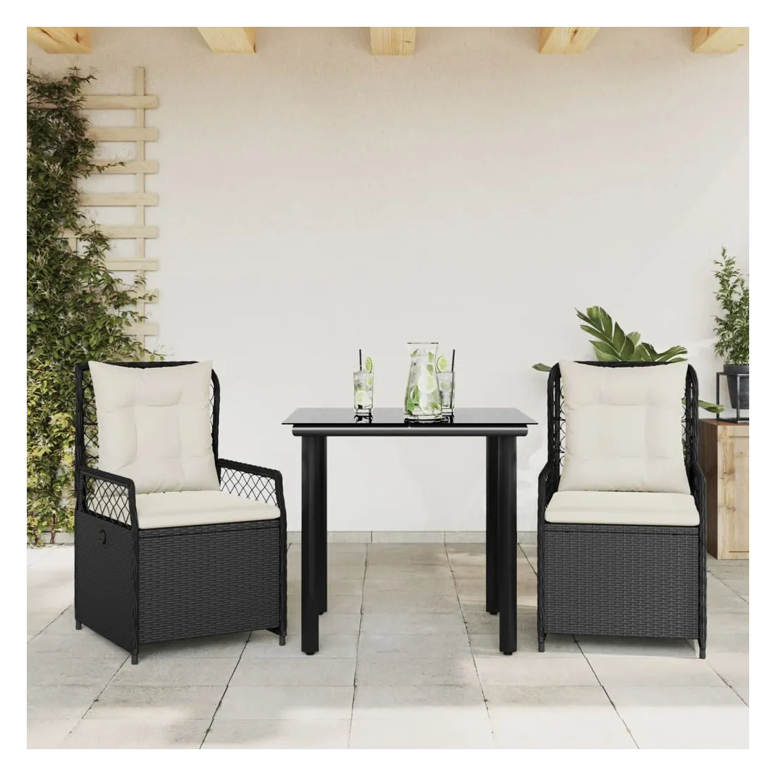 Cet ensemble de salle à manger de jardin est un excellent choix pour les repas en plein air ou pour vous détendre dans le jardin, dans l'arrière-cour ou sur la terrasse. Matériau durable : la résine tressée, également connue sous le nom de poly rotin, est un matériau synthétique solide et nécessitant peu d'entretien qui ressemble au rotin naturel. Il est léger, facile à nettoyer et couramment utilisé pour les meubles d'extérieur en raison de sa durabilité et de ses propriétés de résistance aux intempéries.Dossier réglable : ce siège de jardin est doté d'une poignée. Vous pouvez régler le dossier dans n'importe quelle position en tirant sur la poignée et le remettre rapidement dans sa position initiale.Expérience d'assise confortable : ce mobilier d'extérieur, doté de coussins épais, offre une expérience d'assise confortable.Housse amovible et lavable : le coussin de siège est doté d'une housse amovible pour un lavage et un entretien faciles.Dessus en verre : le dessus de la table d'extérieur est fabriqué en verre trempé solide et durable, ce qui le rend facile à nettoyer avec un chiffon humide et ajoute une touche d'élégance à votre espace extérieur. Bon à savoir :Pour que vos meubles d'extérieur restent beaux, nous vous recommandons de les protéger avec une housse imperméable.