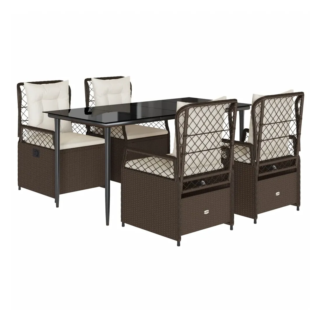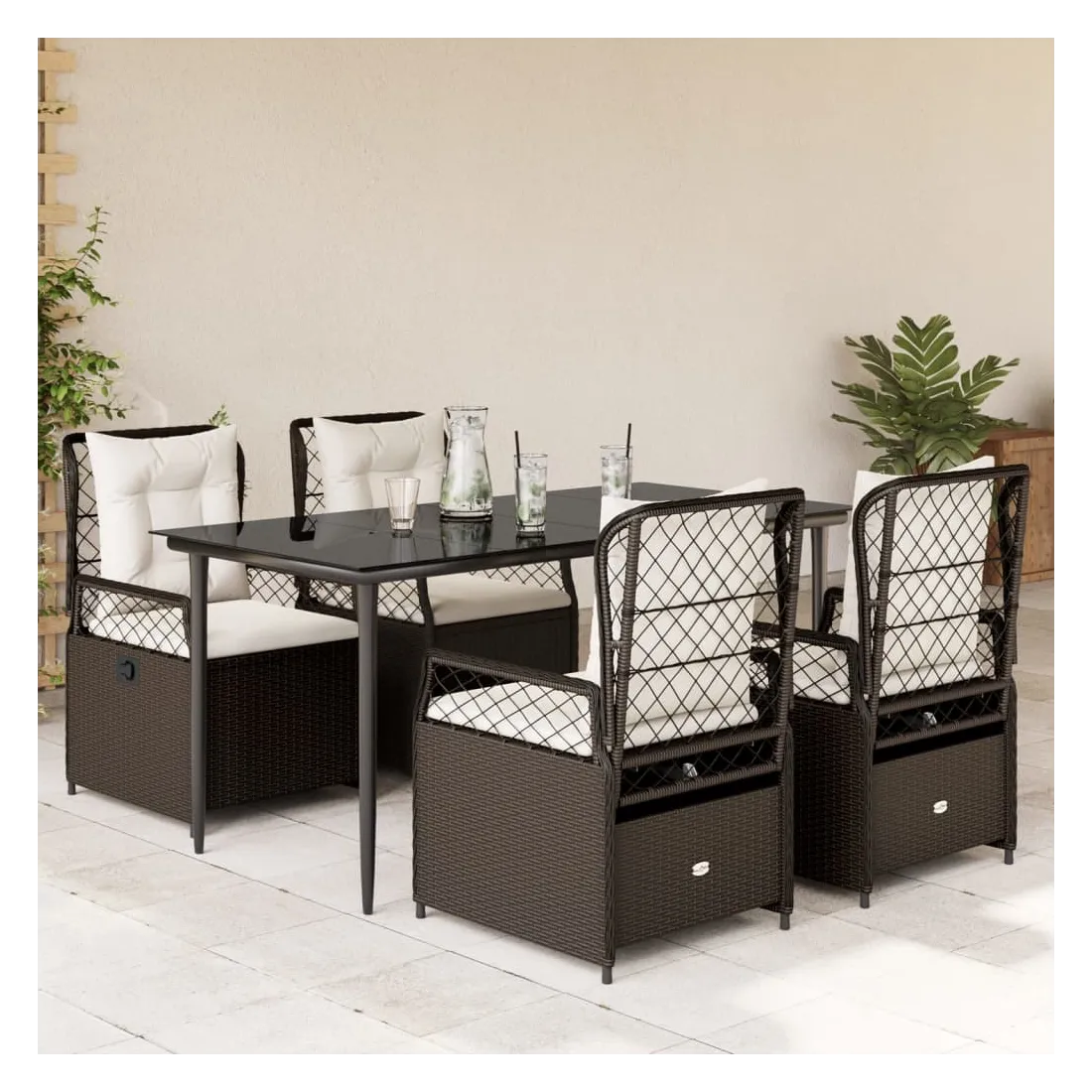 Cet ensemble de salle à manger de jardin est un excellent choix pour les repas en plein air ou pour vous détendre dans le jardin, dans l'arrière-cour ou sur la terrasse. Matériau durable : la résine tressée, également connue sous le nom de poly rotin, est un matériau synthétique solide et nécessitant peu d'entretien qui ressemble au rotin naturel. Il est léger, facile à nettoyer et couramment utilisé pour les meubles d'extérieur en raison de sa durabilité et de ses propriétés de résistance aux intempéries.Dossier réglable : ce siège de jardin est doté d'une poignée. Vous pouvez régler le dossier dans n'importe quelle position en tirant sur la poignée et le remettre rapidement dans sa position initiale.Expérience d'assise confortable : ce mobilier d'extérieur, doté de coussins épais, offre une expérience d'assise confortable.Housse amovible et lavable : le coussin de siège est doté d'une housse amovible pour un lavage et un entretien faciles.Dessus en verre : le dessus de la table d'extérieur est fabriqué en verre trempé solide et durable, ce qui le rend facile à nettoyer avec un chiffon humide et ajoute une touche d'élégance à votre espace extérieur. Bon à savoir :Pour que vos meubles d'extérieur restent beaux, nous vous recommandons de les protéger avec une housse imperméable.