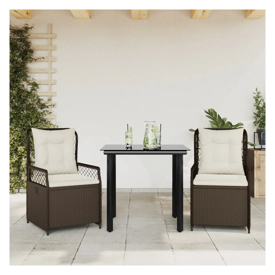 Cet ensemble de salle à manger de jardin est un excellent choix pour les repas en plein air ou pour vous détendre dans le jardin, dans l'arrière-cour ou sur la terrasse. Matériau durable : la résine tressée, également connue sous le nom de poly rotin, est un matériau synthétique solide et nécessitant peu d'entretien qui ressemble au rotin naturel. Il est léger, facile à nettoyer et couramment utilisé pour les meubles d'extérieur en raison de sa durabilité et de ses propriétés de résistance aux intempéries.Dossier réglable : ce siège de jardin est doté d'une poignée. Vous pouvez régler le dossier dans n'importe quelle position en tirant sur la poignée et le remettre rapidement dans sa position initiale.Expérience d'assise confortable : ce mobilier d'extérieur, doté de coussins épais, offre une expérience d'assise confortable.Housse amovible et lavable : le coussin de siège est doté d'une housse amovible pour un lavage et un entretien faciles.Dessus en verre : le dessus de la table d'extérieur est fabriqué en verre trempé solide et durable, ce qui le rend facile à nettoyer avec un chiffon humide et ajoute une touche d'élégance à votre espace extérieur. Bon à savoir :Pour que vos meubles d'extérieur restent beaux, nous vous recommandons de les protéger avec une housse imperméable.