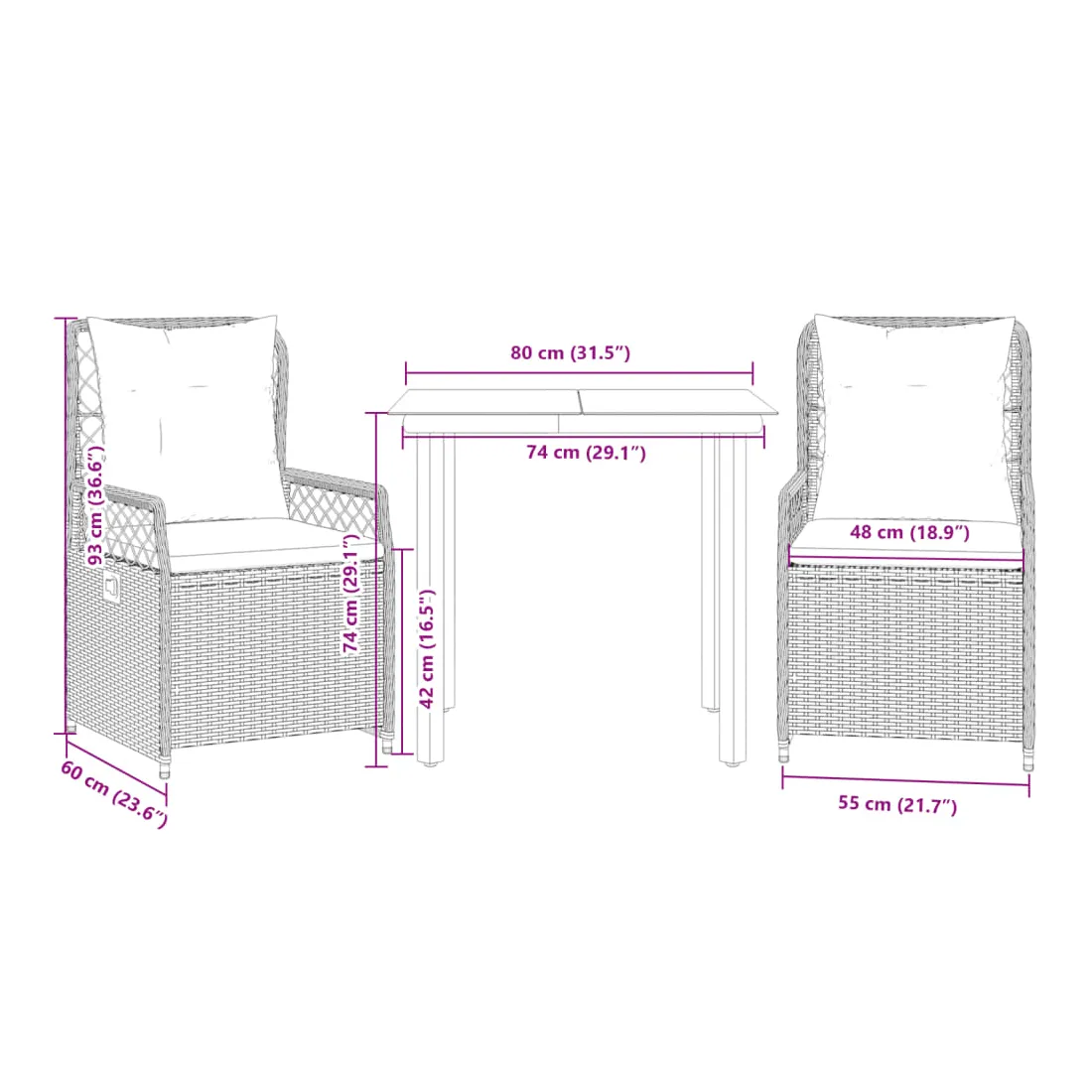 - Dimensions : 80 x 80 x 74 cm (L x l x H)