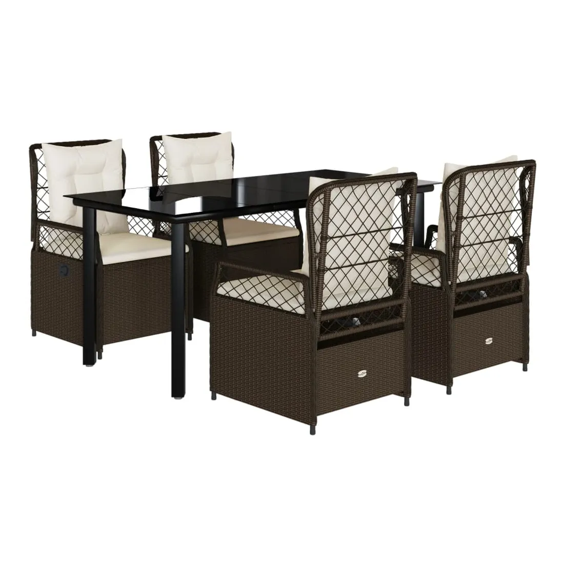 Cet ensemble de salle à manger de jardin est un excellent choix pour les repas en plein air ou pour vous détendre dans le jardin, dans l'arrière-cour ou sur la terrasse. Matériau durable : la résine tressée, également connue sous le nom de poly rotin, est un matériau synthétique solide et nécessitant peu d'entretien qui ressemble au rotin naturel. Il est léger, facile à nettoyer et couramment utilisé pour les meubles d'extérieur en raison de sa durabilité et de ses propriétés de résistance aux intempéries.Dossier réglable : ce siège de jardin est doté d'une poignée. Vous pouvez régler le dossier dans n'importe quelle position en tirant sur la poignée et le remettre rapidement dans sa position initiale.Expérience d'assise confortable : ce mobilier d'extérieur, doté de coussins épais, offre une expérience d'assise confortable.Housse amovible et lavable : le coussin de siège est doté d'une housse amovible pour un lavage et un entretien faciles.Dessus en verre : le dessus de la table d'extérieur est fabriqué en verre trempé solide et durable, ce qui le rend facile à nettoyer avec un chiffon humide et ajoute une touche d'élégance à votre espace extérieur. Bon à savoir :Pour que vos meubles d'extérieur restent beaux, nous vous recommandons de les protéger avec une housse imperméable.
