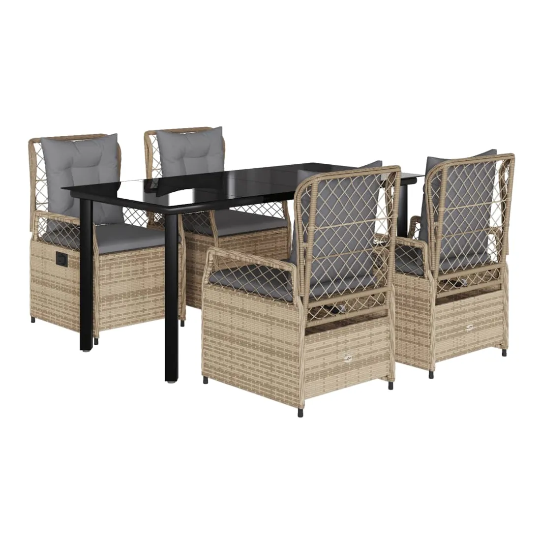 Cet ensemble de salle à manger de jardin est un excellent choix pour les repas en plein air ou pour vous détendre dans le jardin, dans l'arrière-cour ou sur la terrasse. Matériau durable : la résine tressée, également connue sous le nom de poly rotin, est un matériau synthétique solide et nécessitant peu d'entretien qui ressemble au rotin naturel. Il est léger, facile à nettoyer et couramment utilisé pour les meubles d'extérieur en raison de sa durabilité et de ses propriétés de résistance aux intempéries.Dossier réglable : ce siège de jardin est doté d'une poignée. Vous pouvez régler le dossier dans n'importe quelle position en tirant sur la poignée et le remettre rapidement dans sa position initiale.Expérience d'assise confortable : ce mobilier d'extérieur, doté de coussins épais, offre une expérience d'assise confortable.Housse amovible et lavable : le coussin de siège est doté d'une housse amovible pour un lavage et un entretien faciles.Dessus en verre : le dessus de la table d'extérieur est fabriqué en verre trempé solide et durable, ce qui le rend facile à nettoyer avec un chiffon humide et ajoute une touche d'élégance à votre espace extérieur. Bon à savoir :Pour que vos meubles d'extérieur restent beaux, nous vous recommandons de les protéger avec une housse imperméable.