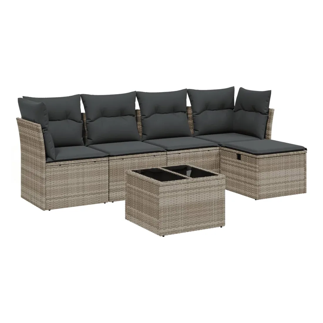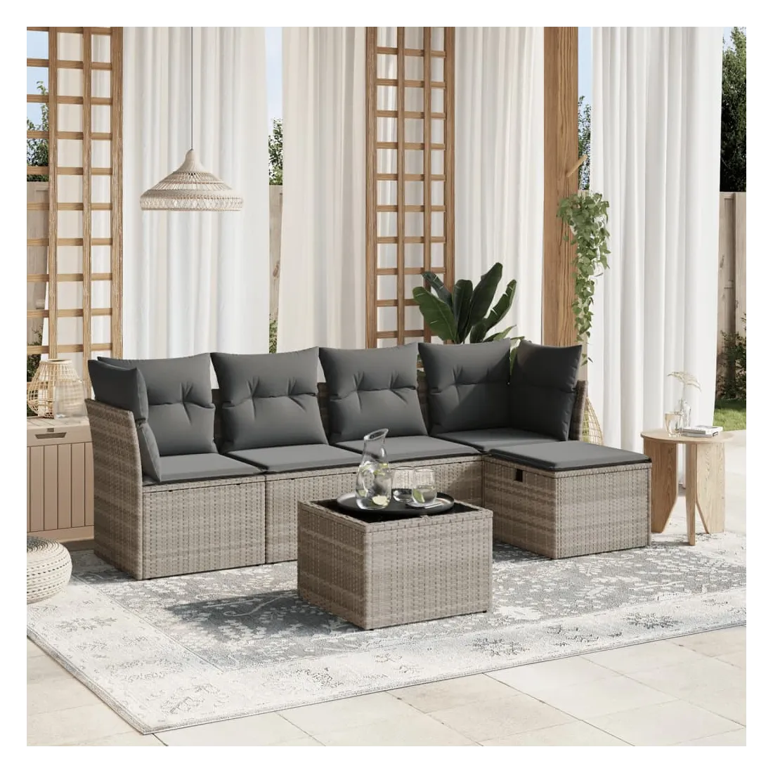 Cet ensemble de canapés de jardin est le complément parfait de votre arrière-cour, terrasse ou patio, offrant un espace confortable et accueillant pour discuter avec la famille et les amis ou simplement se détendre et profiter de l'extérieur. Matériau durable : la résine tressée, également connue sous le nom de poly rotin, est un matériau synthétique solide et nécessitant peu d'entretien qui ressemble au rotin naturel. Il est léger, facile à nettoyer et couramment utilisé pour les meubles d'extérieur en raison de sa durabilité et de ses propriétés de résistance aux intempéries.Dessus en verre : le dessus de la table d'extérieur est fabriqué en verre trempé solide et durable, ce qui le rend facile à nettoyer avec un chiffon humide et ajoute une touche d'élégance à votre espace extérieur.Housse amovible et lavable : ces coussins de siège sont dotés de housses amovibles pour un lavage et un entretien faciles.Cadre robuste et stable : le cadre en acier enduit de poudre assure la solidité et la stabilité du meuble de jardin pour une utilisation quotidienne à l'extérieur.Conception modulaire : cet ensemble de meubles d'extérieur a une conception modulaire, ce qui le rend complètement flexible et facile à déplacer, afin que vous puissiez créer un agencement de meubles d'extérieur personnalisé. Bon à savoir :Pour que vos meubles d'extérieur restent beaux, nous vous recommandons de les protéger avec une housse imperméable.