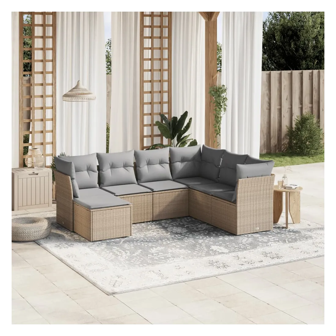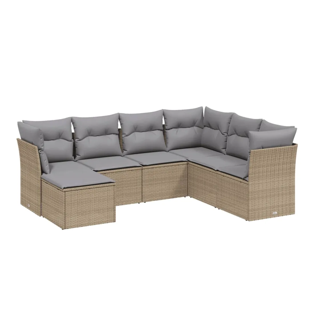 Salon de jardin avec coussins 7pcs mélange beige résine tressée