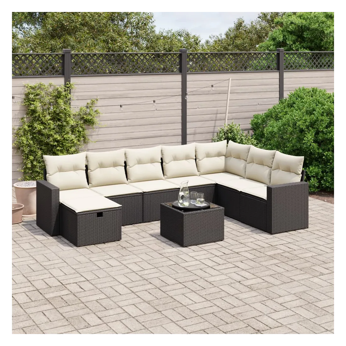 Cet ensemble de canapés de jardin est le complément parfait de votre arrière-cour, terrasse ou patio, offrant un espace confortable et accueillant pour discuter avec la famille et les amis ou simplement se détendre et profiter de l'extérieur. Matériau durable : la résine tressée, également connue sous le nom de poly rotin, est un matériau synthétique solide et nécessitant peu d'entretien qui ressemble au rotin naturel. Il est léger, facile à nettoyer et couramment utilisé pour les meubles d'extérieur en raison de sa durabilité et de ses propriétés de résistance aux intempéries.Dessus en verre : le dessus de la table d'extérieur est fabriqué en verre trempé solide et durable, ce qui le rend facile à nettoyer avec un chiffon humide et ajoute une touche d'élégance à votre espace extérieur.Housse amovible et lavable : ces coussins de siège sont dotés de housses amovibles pour un lavage et un entretien faciles.Cadre robuste et stable : le cadre en acier enduit de poudre assure la solidité et la stabilité du meuble de jardin pour une utilisation quotidienne à l'extérieur.Conception modulaire : cet ensemble de meubles d'extérieur a une conception modulaire, ce qui le rend complètement flexible et facile à déplacer, afin que vous puissiez créer un agencement de meubles d'extérieur personnalisé. Bon à savoir :Pour que vos meubles d'extérieur restent beaux, nous vous recommandons de les protéger avec une housse imperméable.
