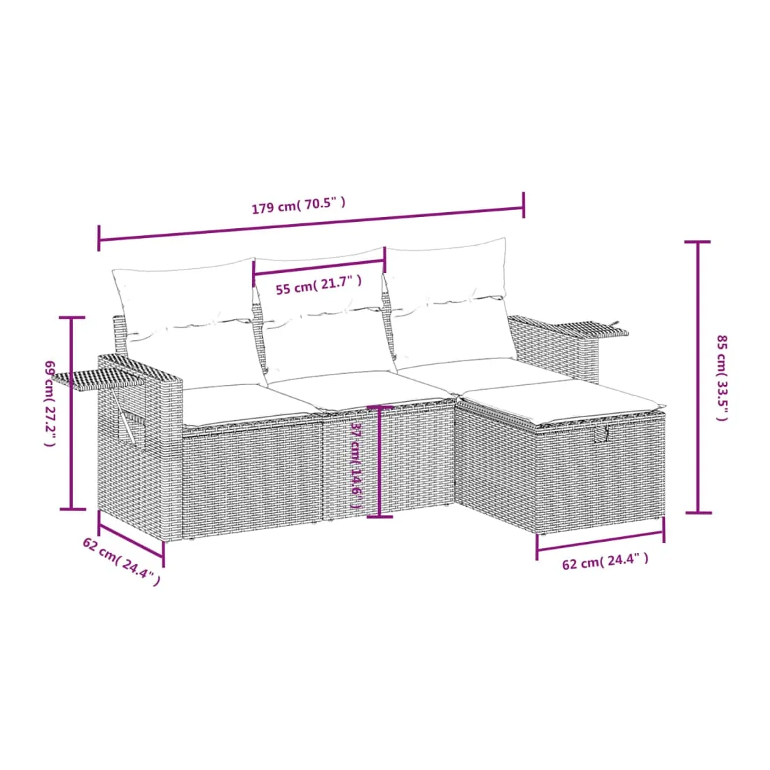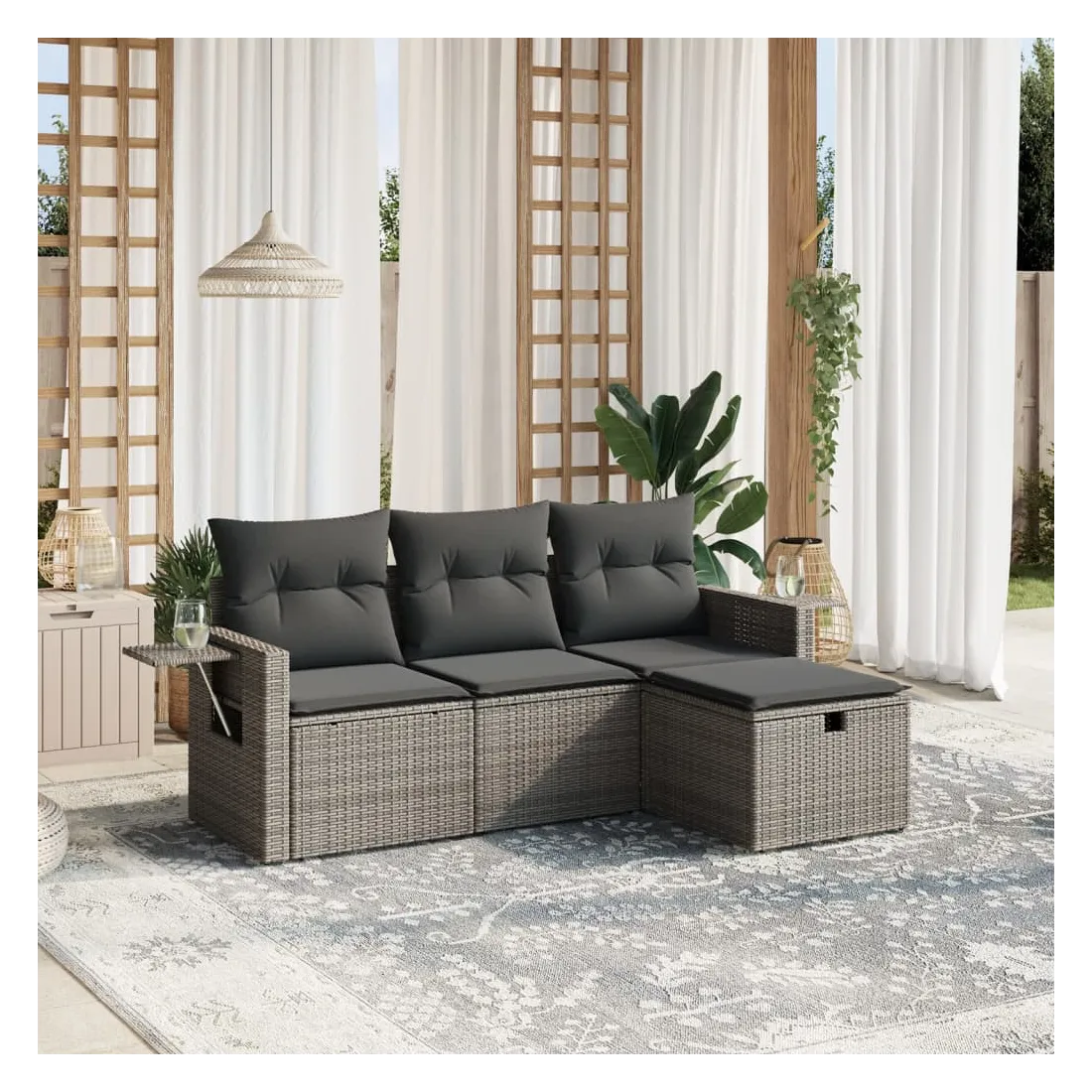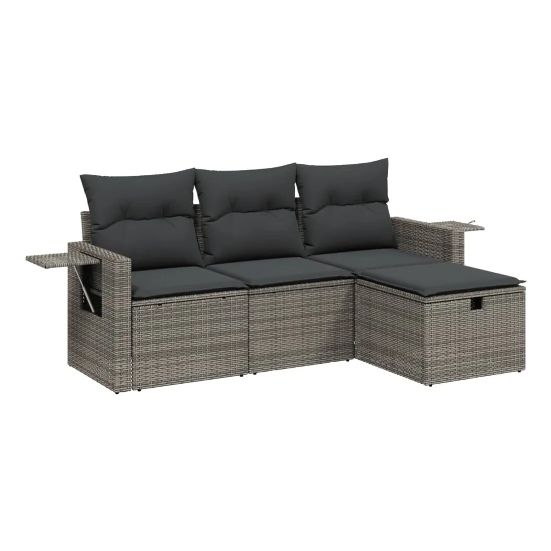 Salon de jardin 4 pcs avec coussins gris résine tressée